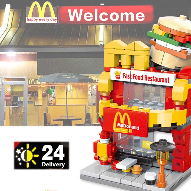 Street View Burger Shop Modelo De Bloco De Construção De Partículas Pequenas Para Meninas Dificuldade Da Cidade Presente