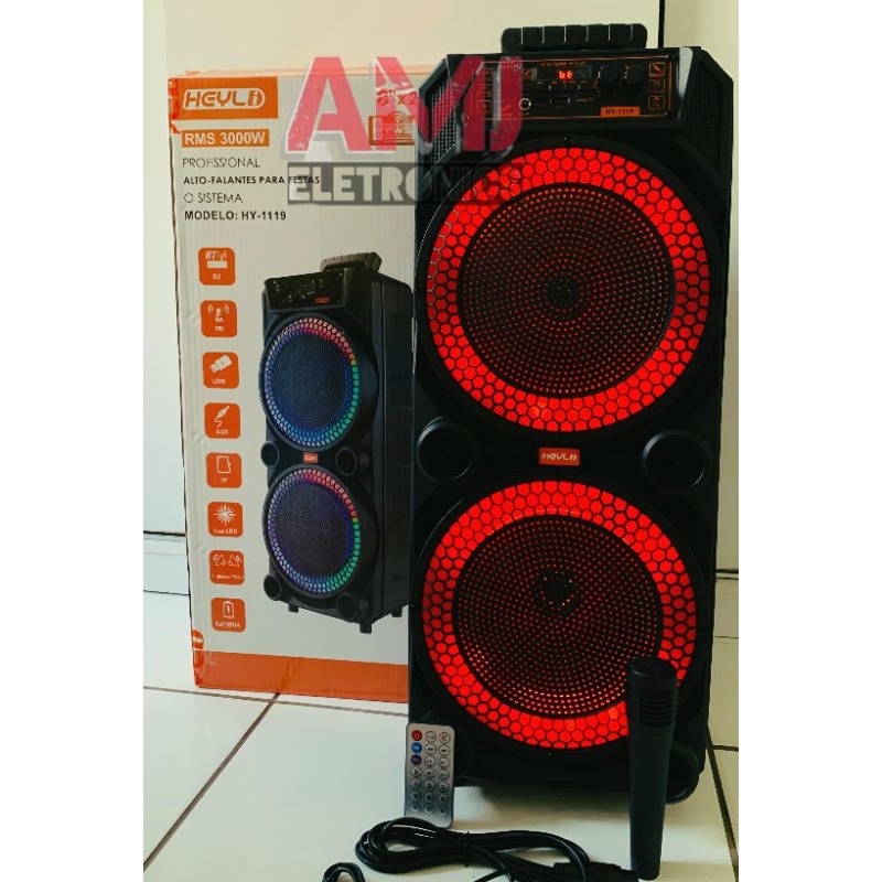 Super Caixa de Som Grande Potente Heyli HY 1119 bluetooth karaoke leds som grande 3000w com microfone