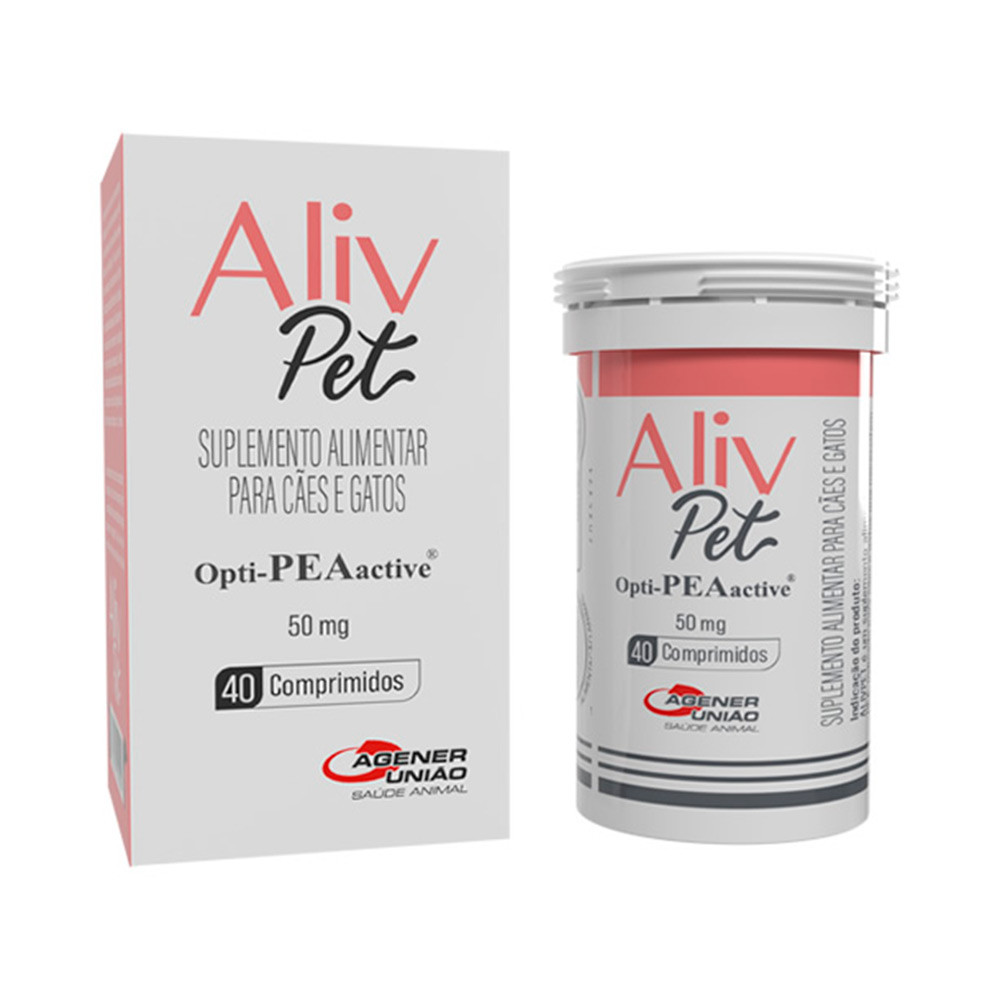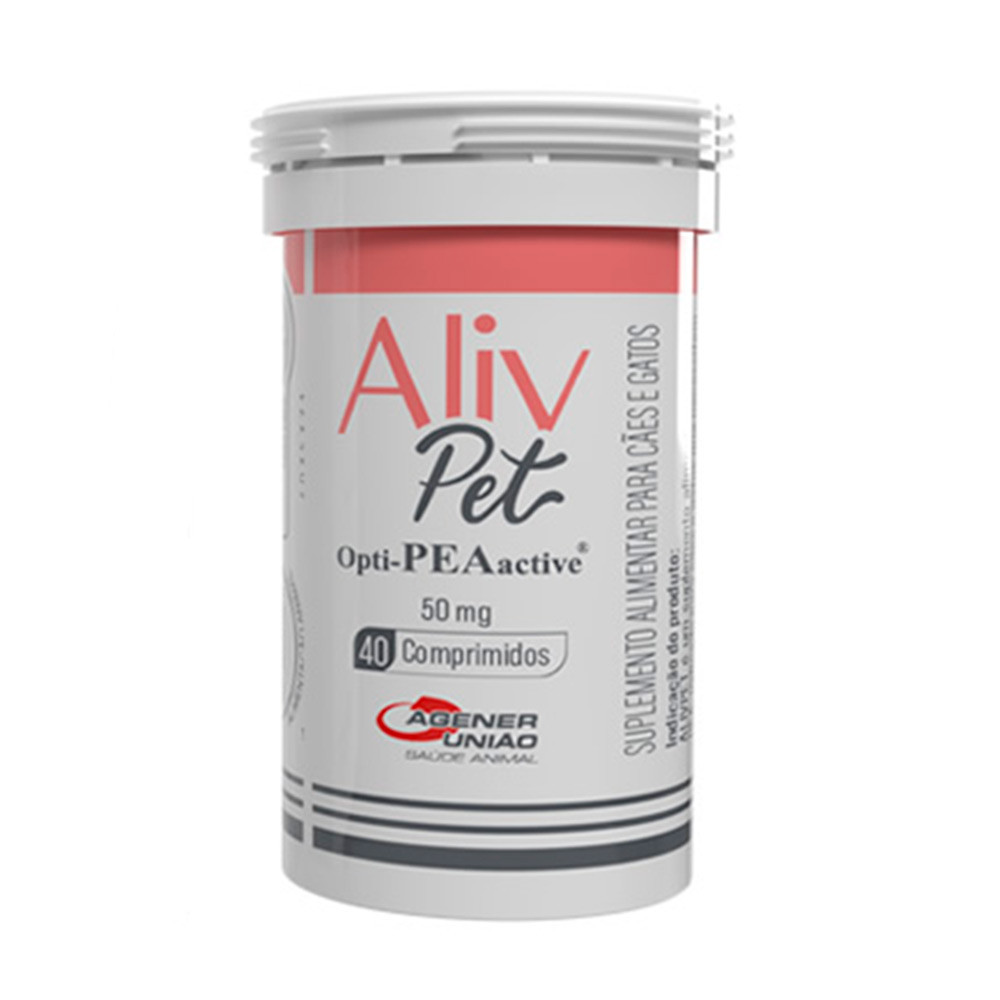 Suplemento Aliv Pet 50mg Para Cães e Gatos Agener União Com 40 Comprimidos
