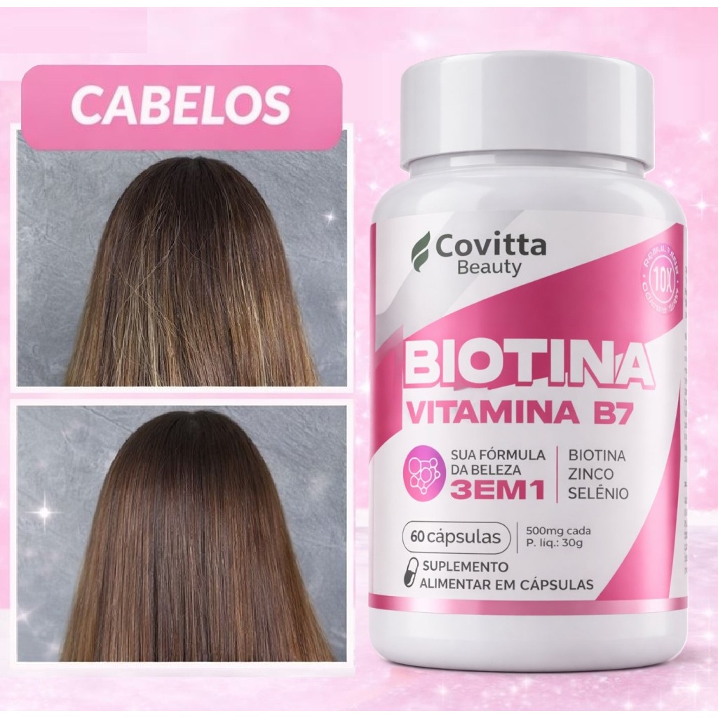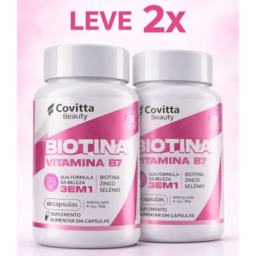 Suplemento Biotina Original 100% Vitamina B7 Covitta – Ação 3 em 1 Cabelo Pele e Unhas–60 Cápsulas