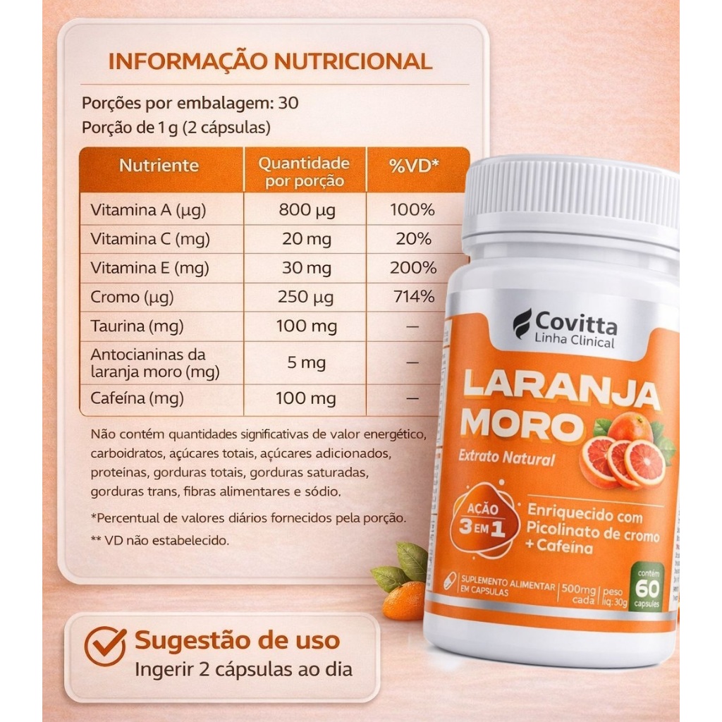 Suplemento Laranja M Original Covitta 60 Caps – Com Picolinato de cromo - Ação 3 em 1