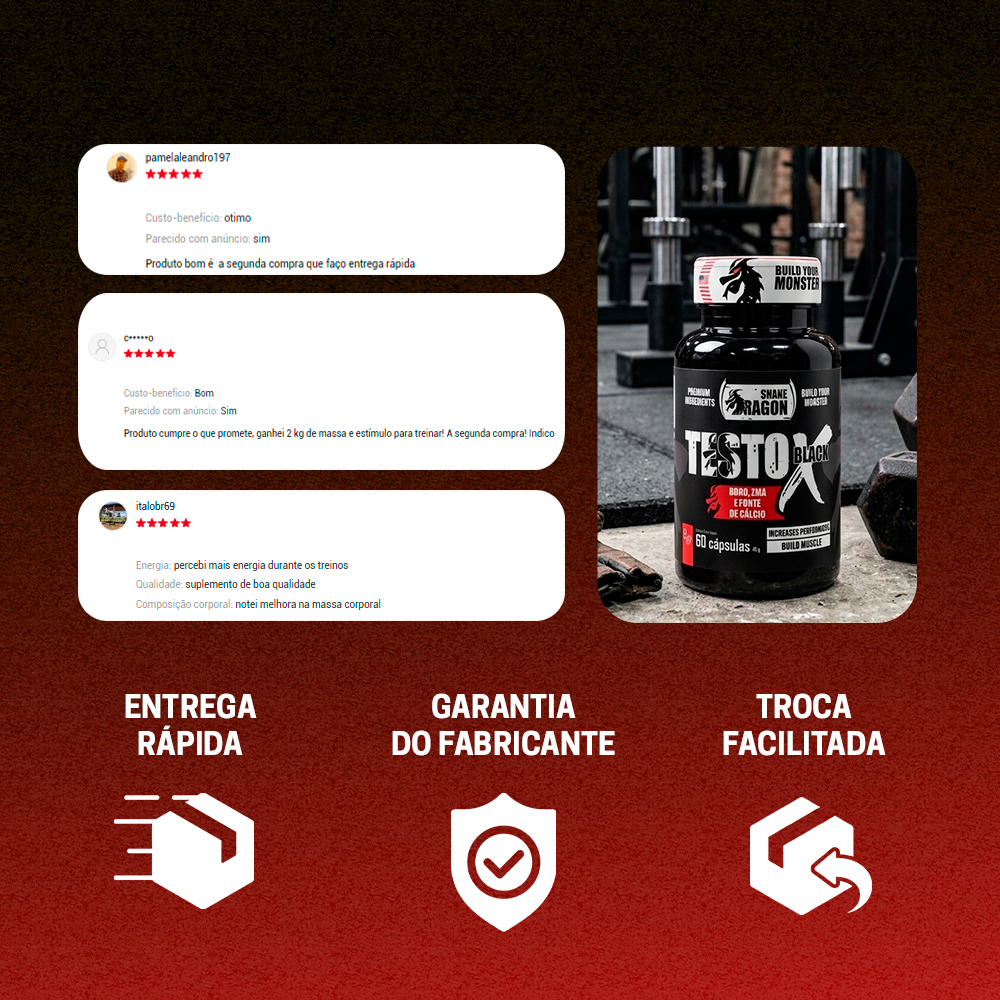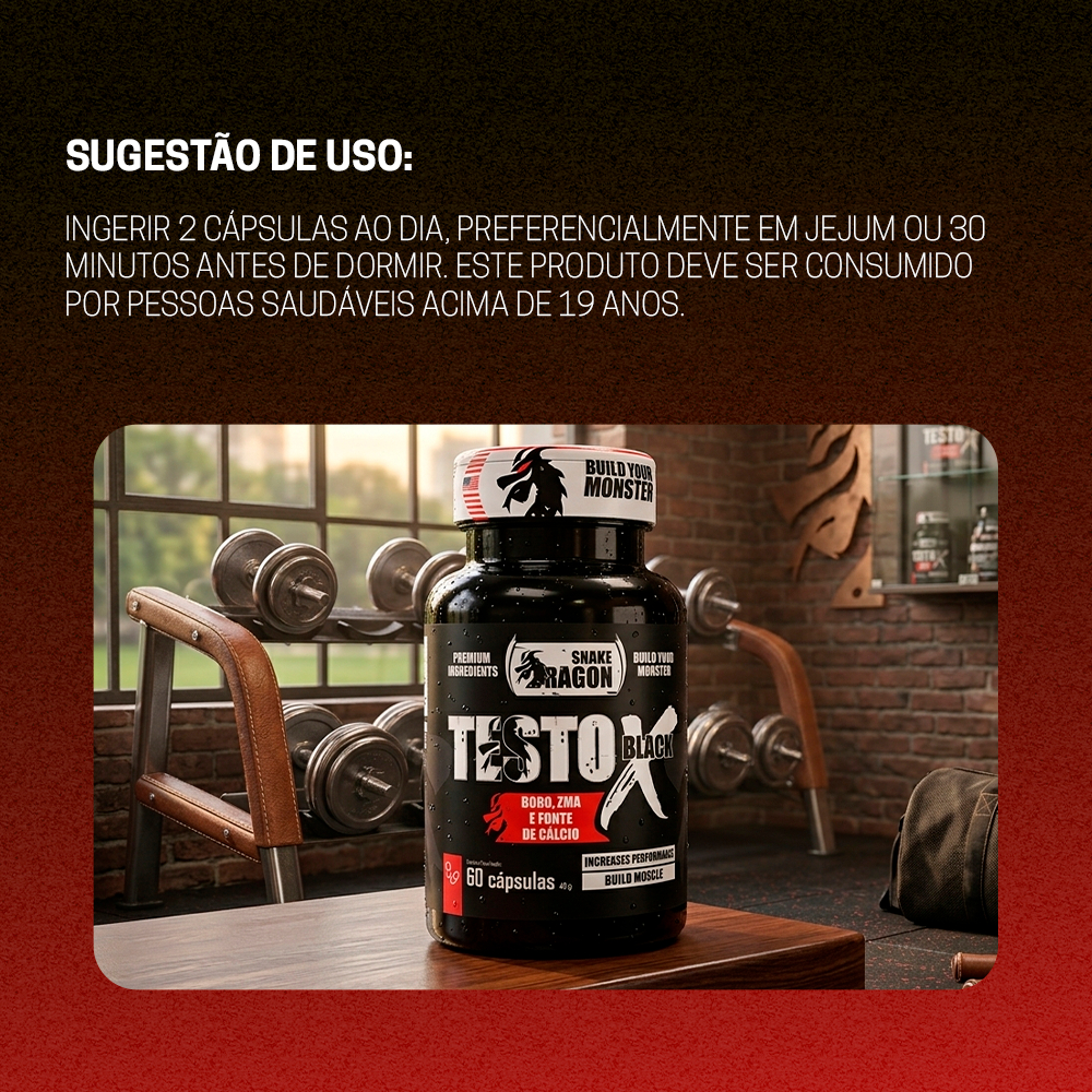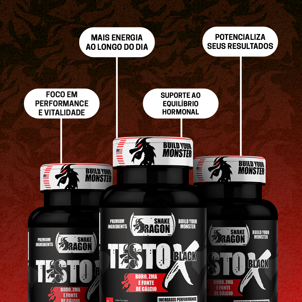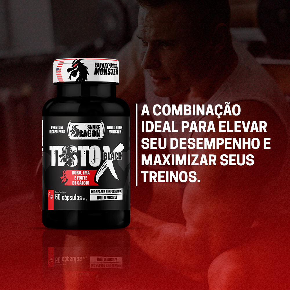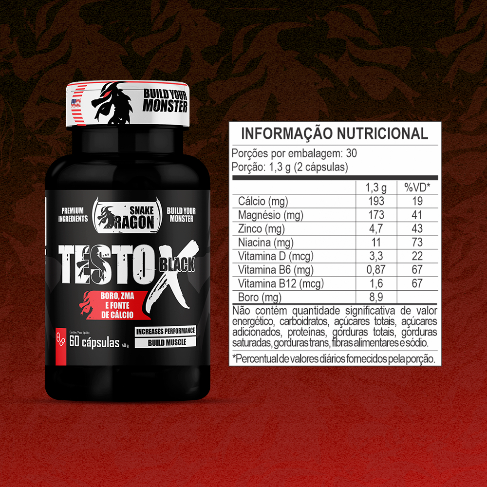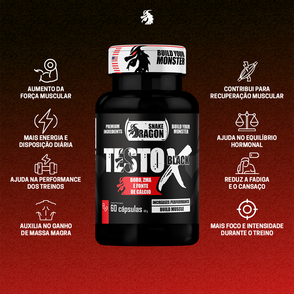 Suplemento Pré Hormonal - Testo X Black, 60 Cápsulas Produção Natural de Testoterona - Snake Dragon