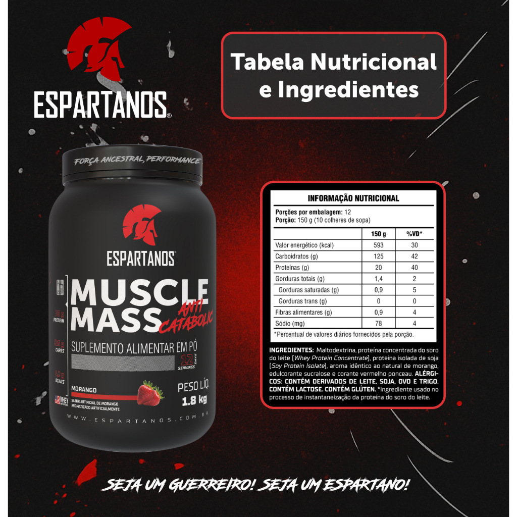 Suplemento em pó Massa Hipercalórico Muscle Mass 1800g - Espartanos Nutrition