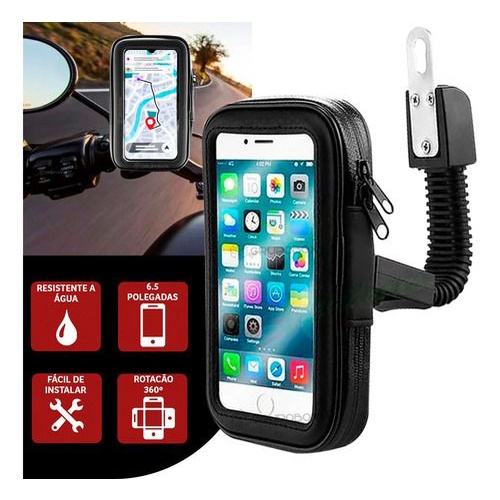 Suporte Bolsa Case Capa Celular Moto Retrovisor Prova D'água E 6.5"