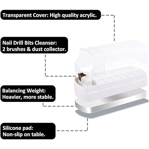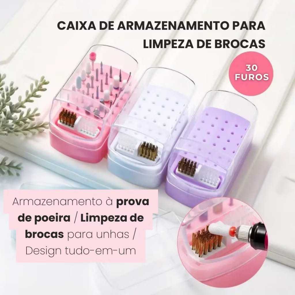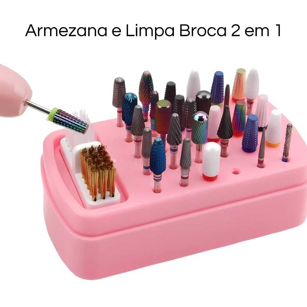 Suporte De Brocas Organizador c/ 30 Furos Manicure Cor Rosa/Branco Escova De Limpeza Nail Design Expositor Gel