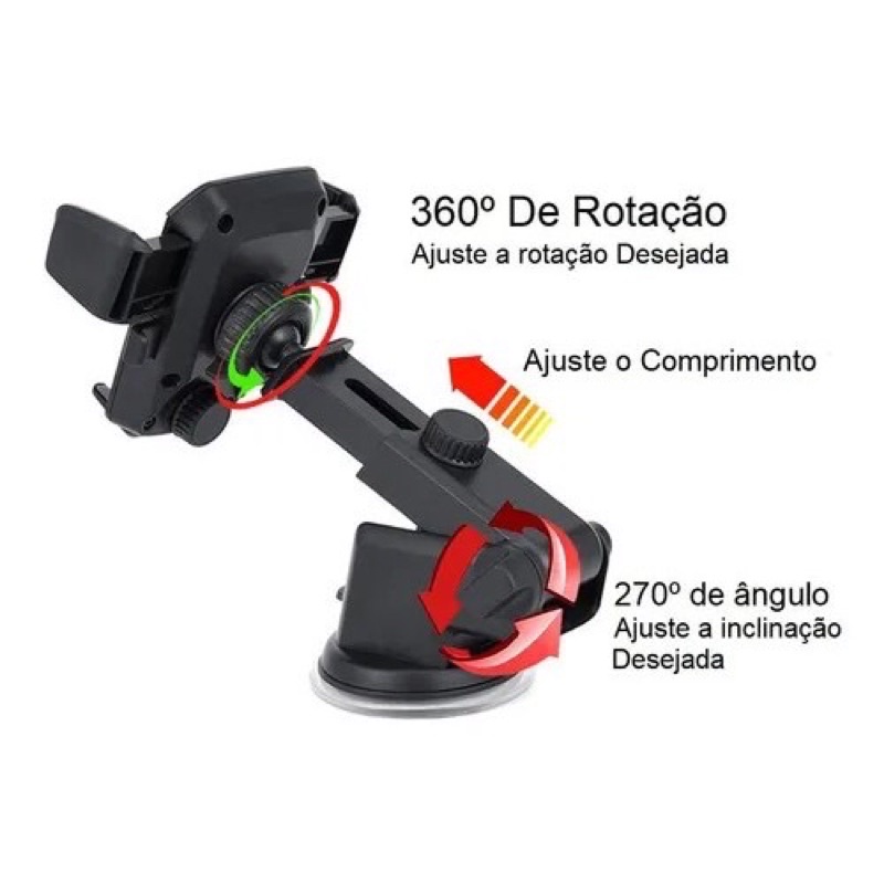 Suporte De Celular Para Carro Com Trava Automática Extensor 360 Graus