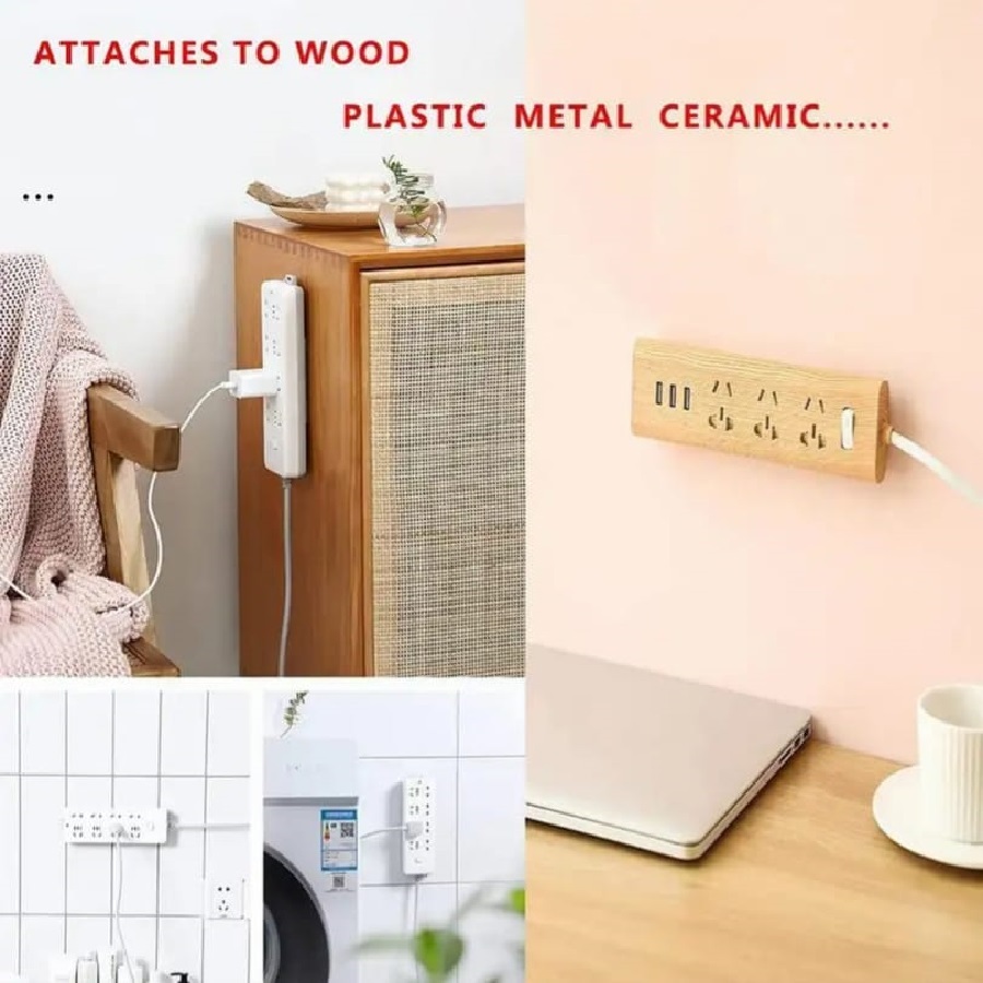 Suporte De Soquete Com Adesivo Painel Fixador De Fio Autocolante Para Escritório 9.8 X 4Cm Cinza