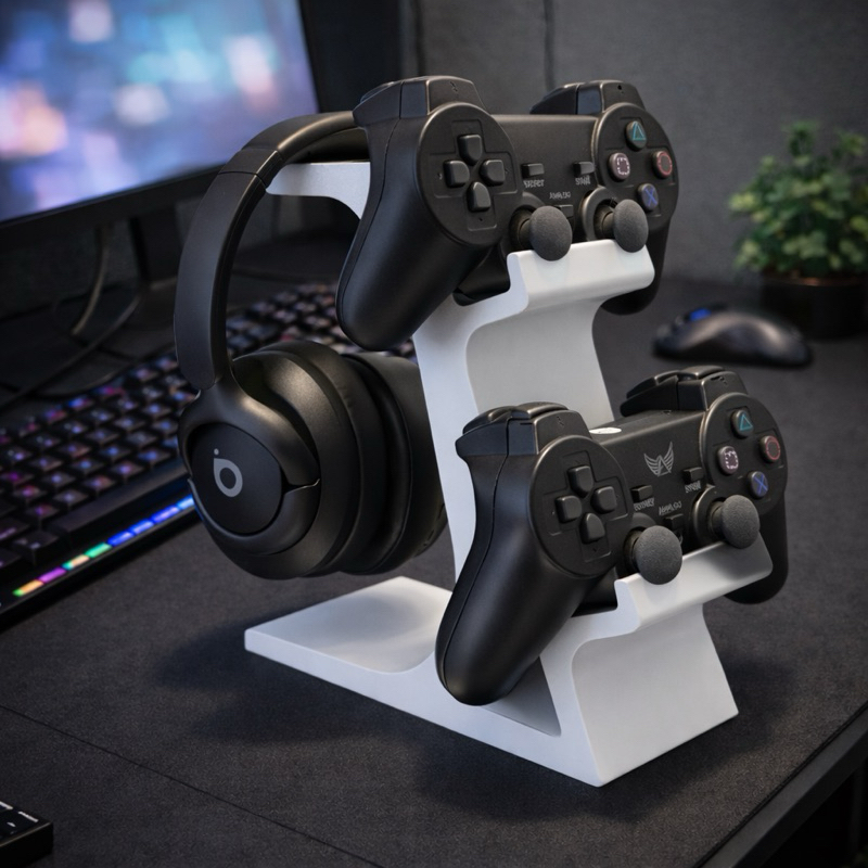 Suporte Headset Gamer e 2 Controles Ps5 Ps4 Fone de Ouvido Universal Resistente Organizador de Mesa