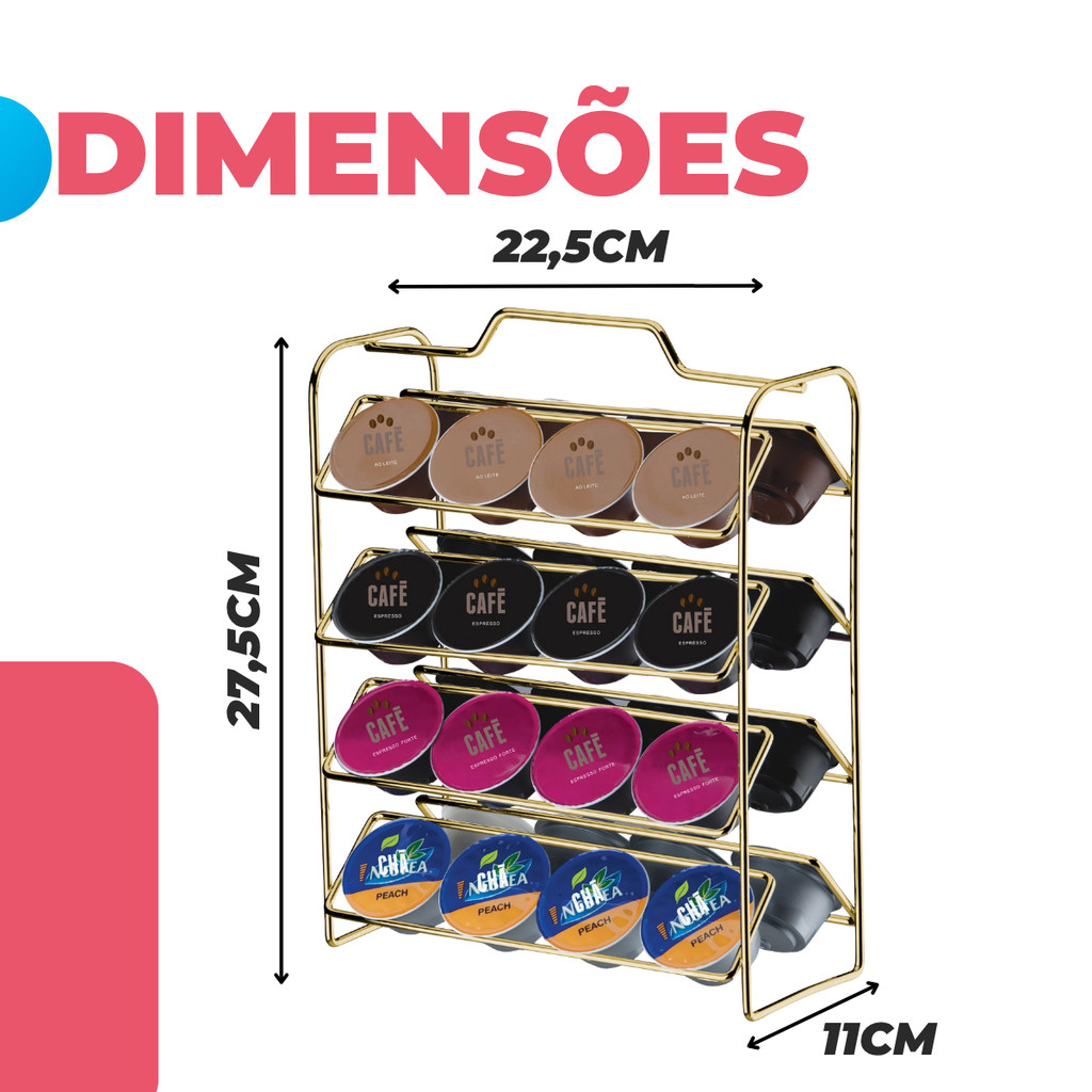 Suporte Organizador Porta Cápsulas Cafe Dolce Gusto 32un Consultorio Escritorio Dourado Gold Future