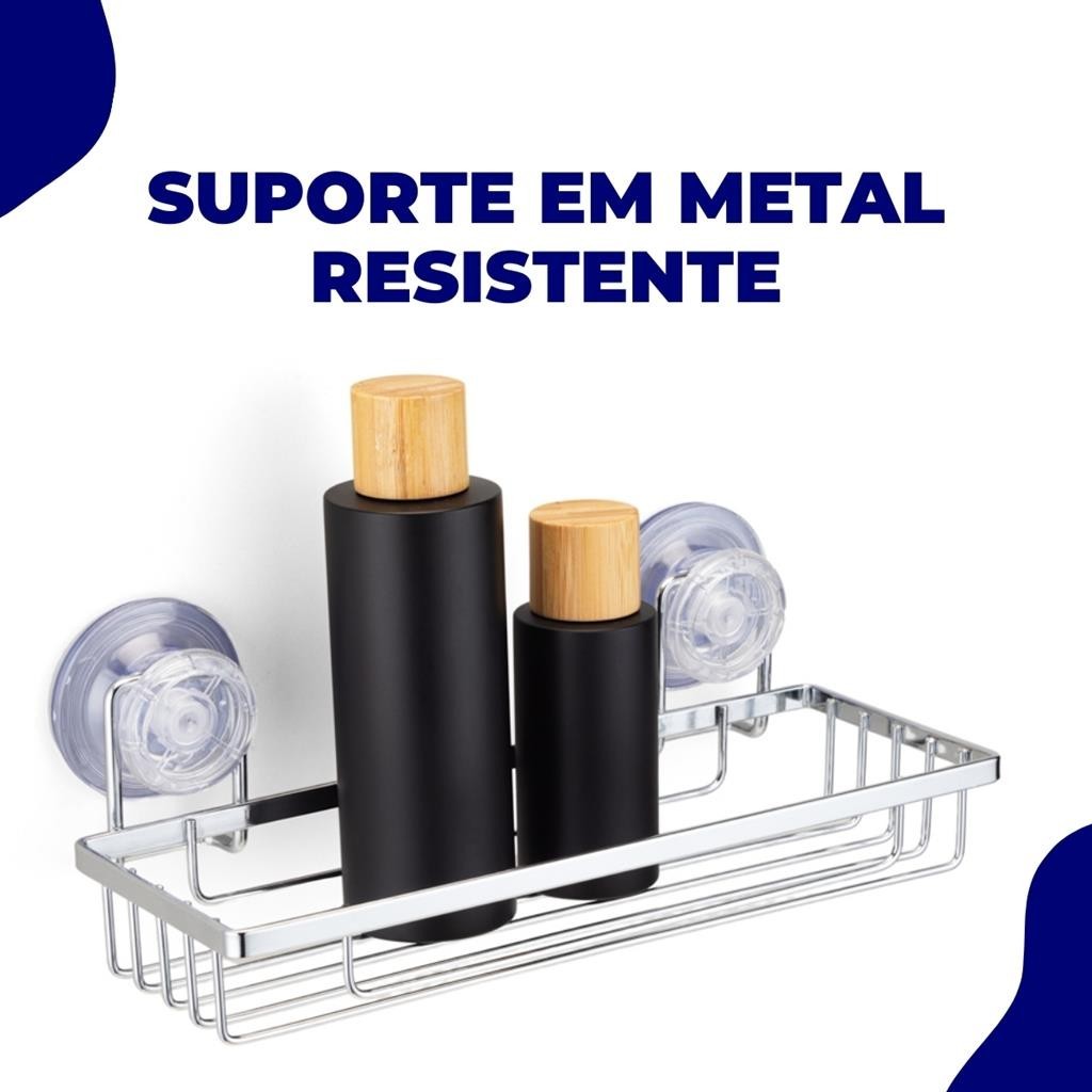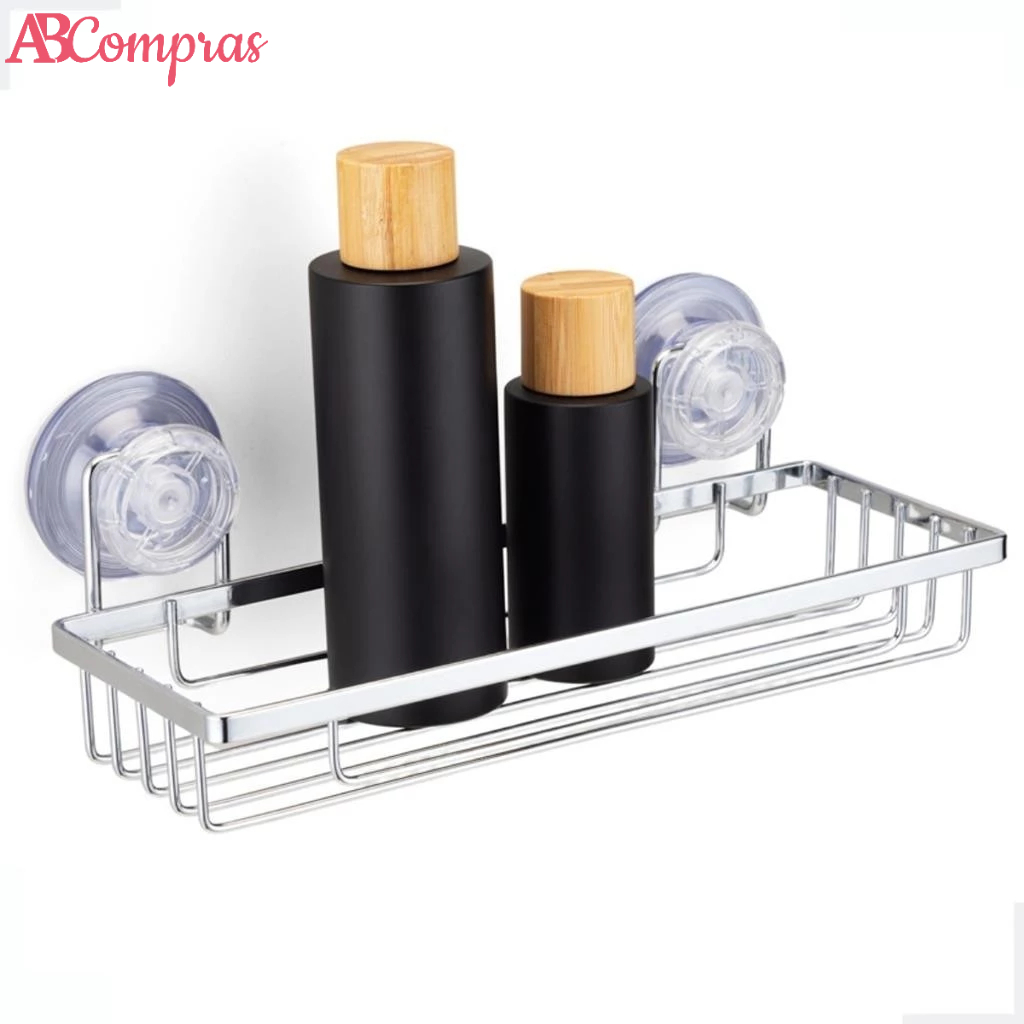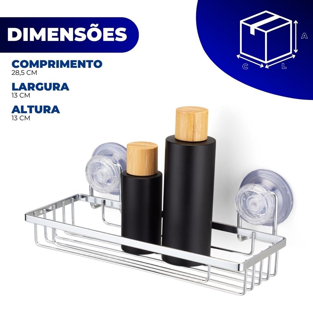Suporte Organizador Porta Shampoo Parede Prateleira Azulejo Fixacao Sem Furo Ventosa Cromado Arthi