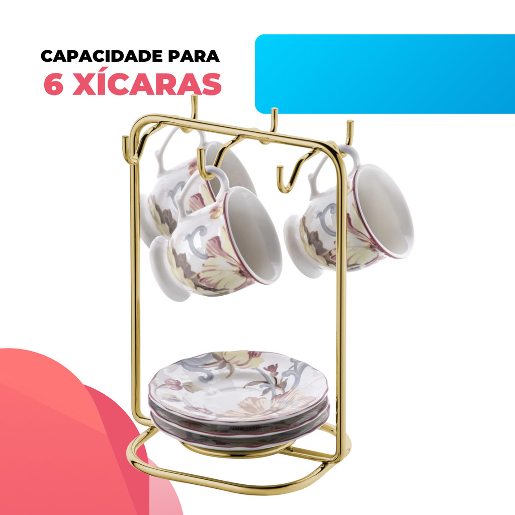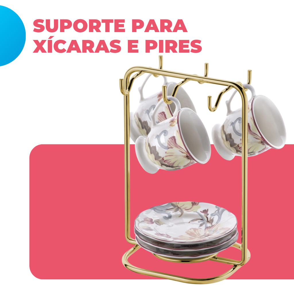 Suporte Organizador Porta Xícaras Pires Cafe Escritorio Consultorio Cozinha Dourado Gold Future