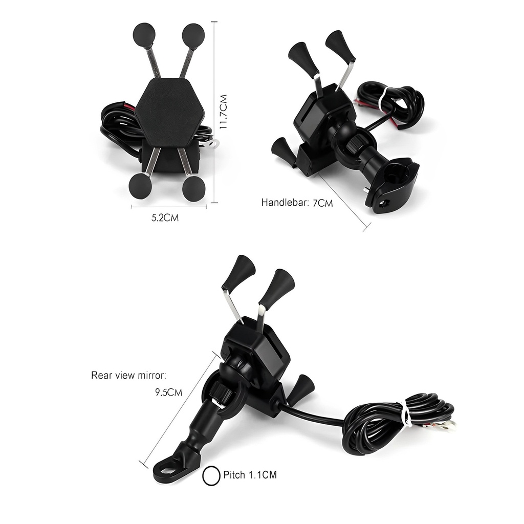 Suporte Para Motocicletas USB com Carregador - 360 Rotação