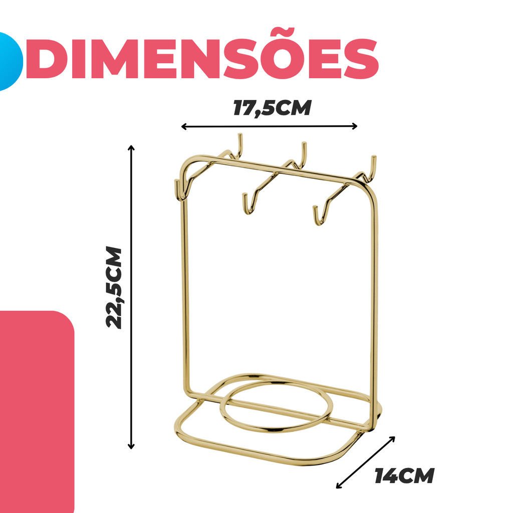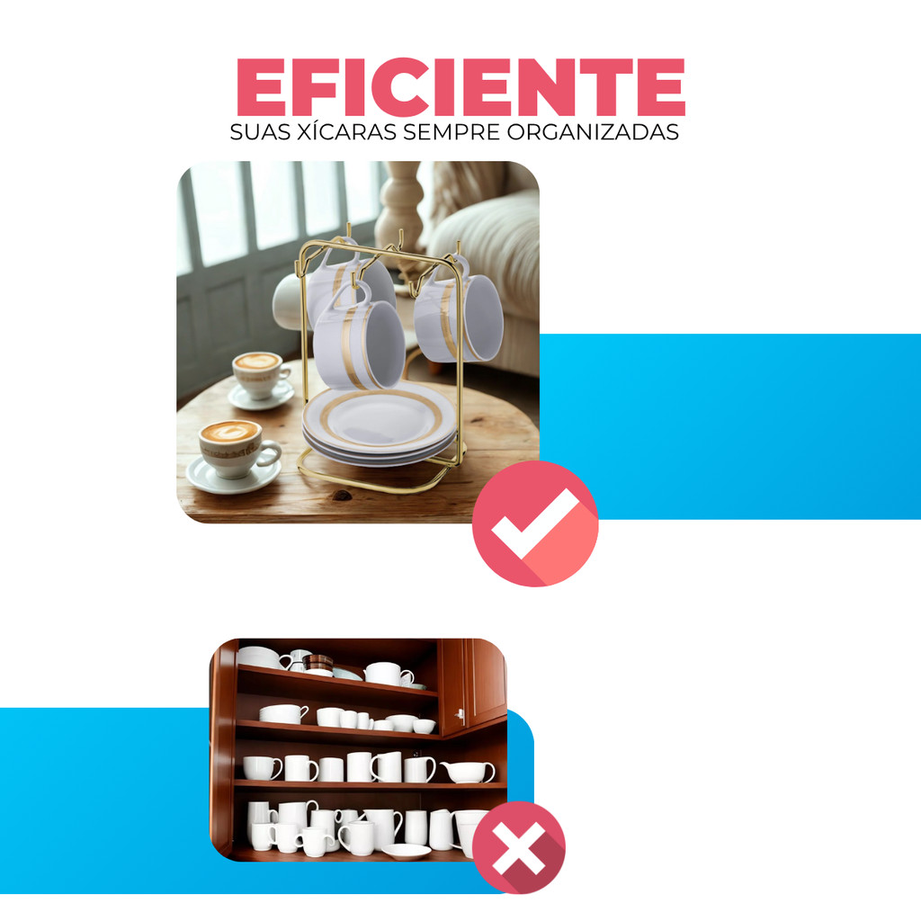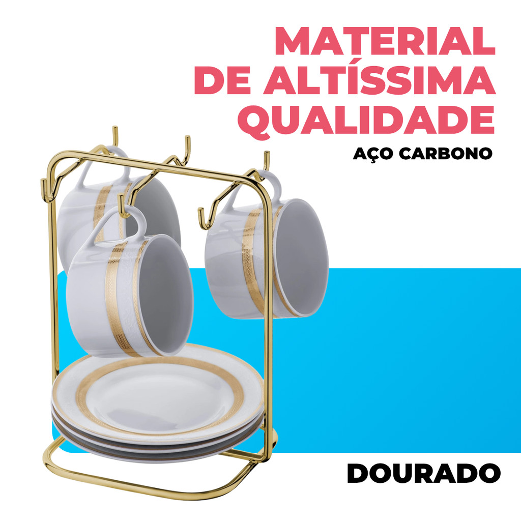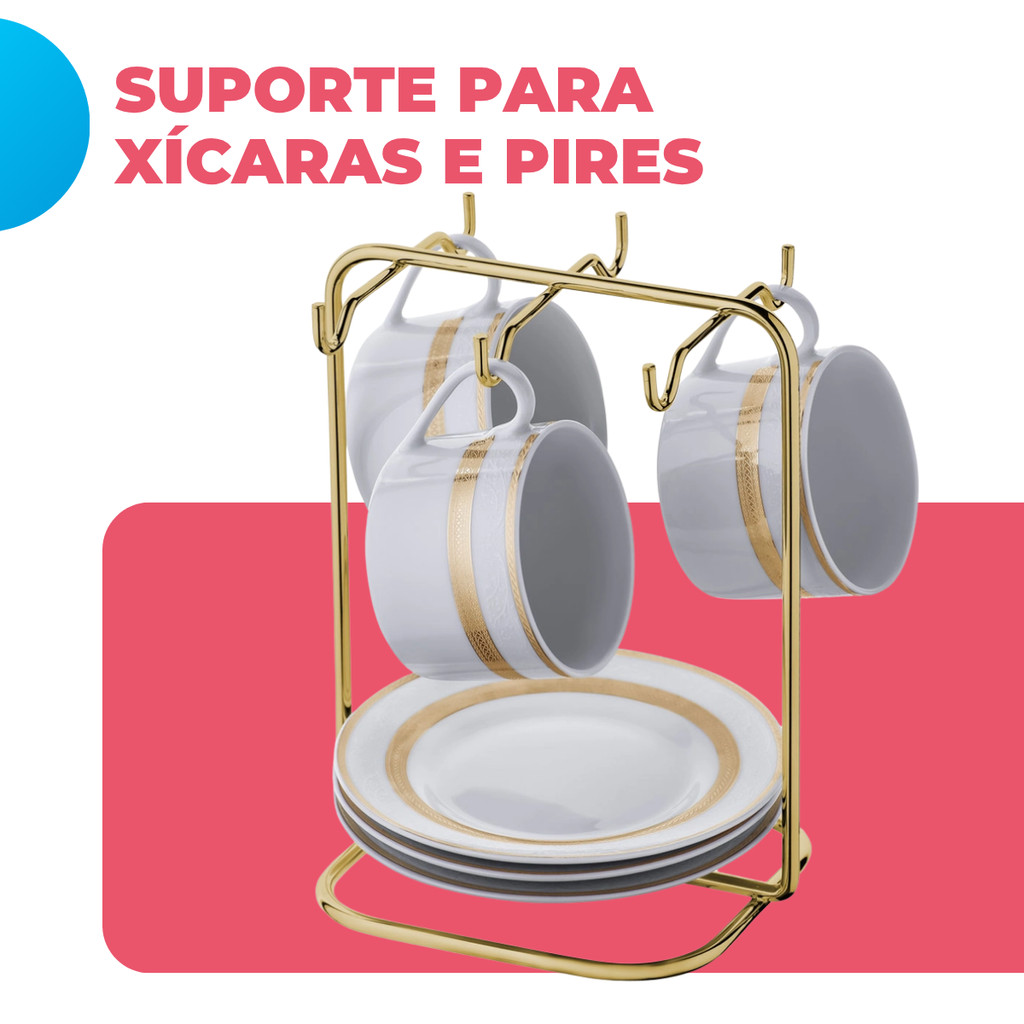 Suporte Porta Organizador Xícaras e Pires de Cha Elegante Cantinho do Cafe Dourado Gold Future