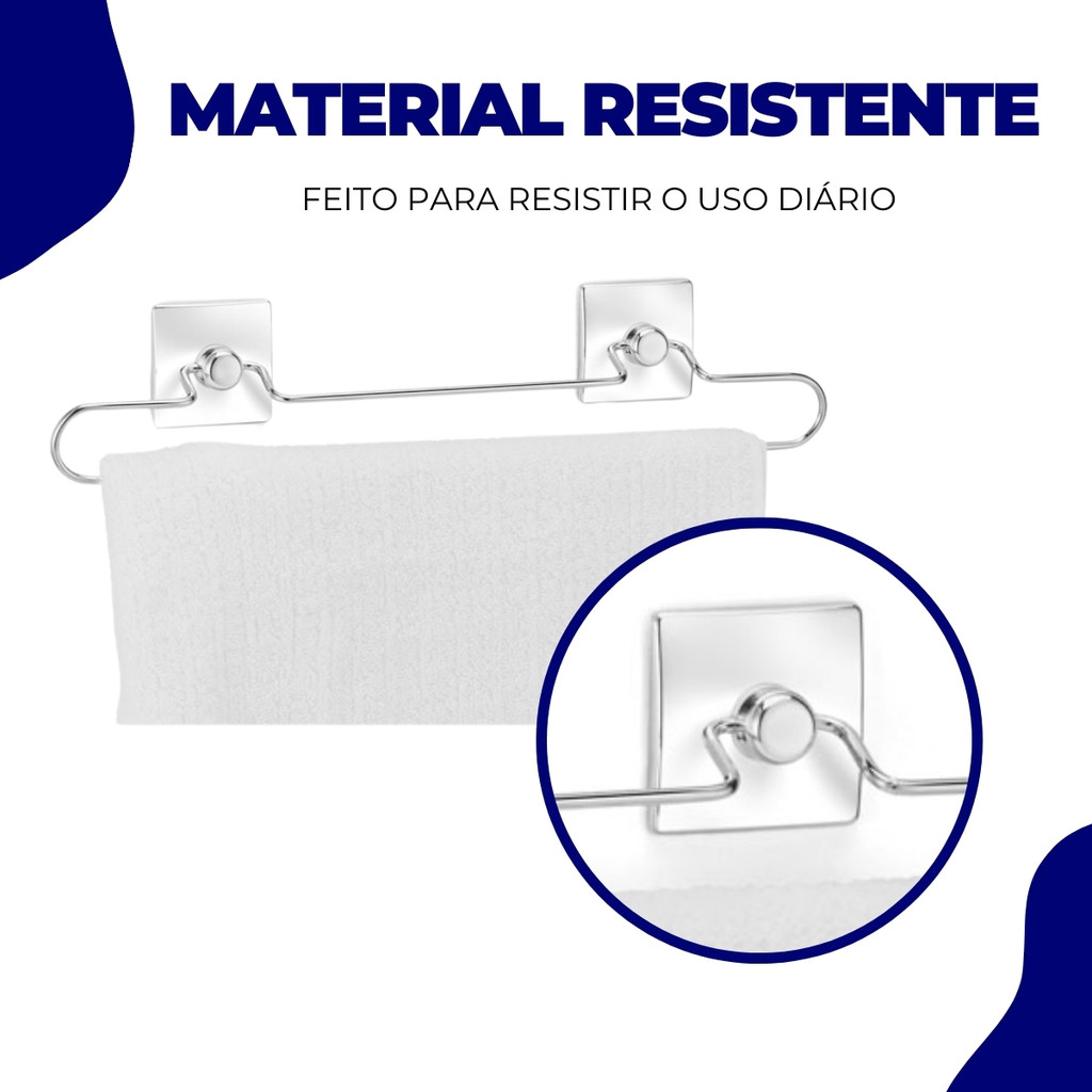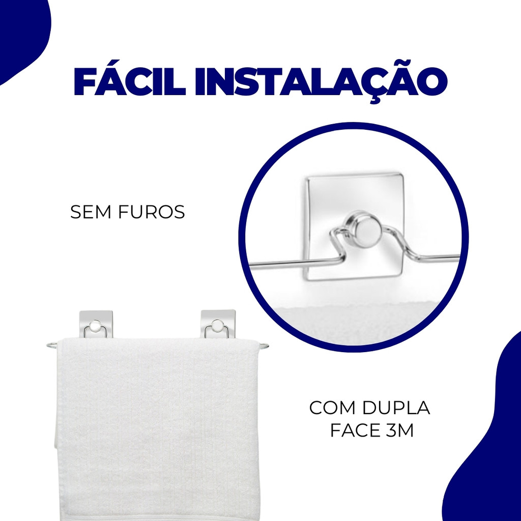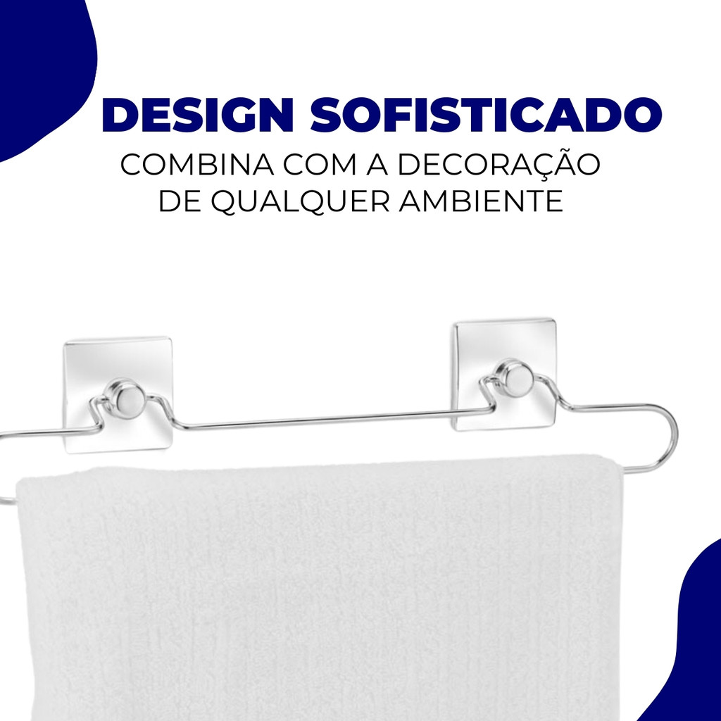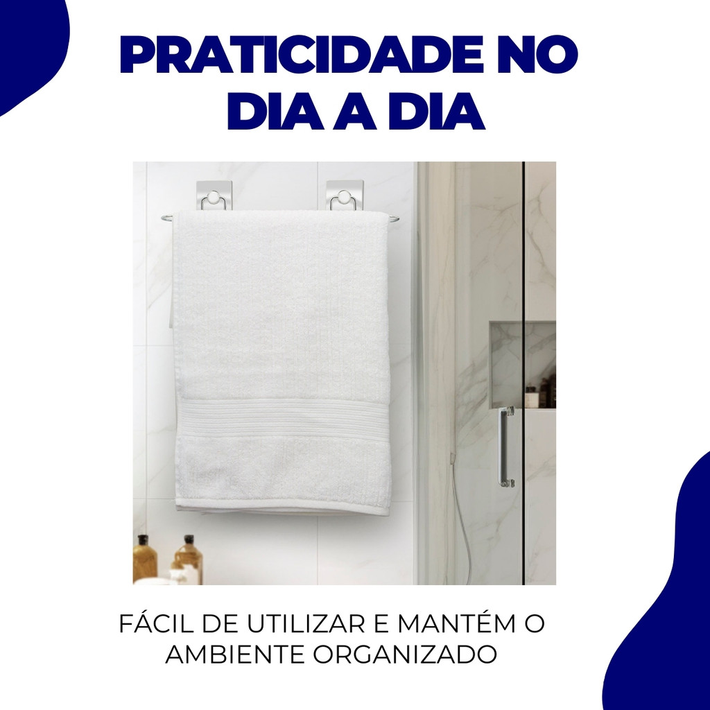 Suporte Porta Toalha de Banho Toalheiro Banheiro Fixação Dupla Face Sem Furos Cromado Arthi