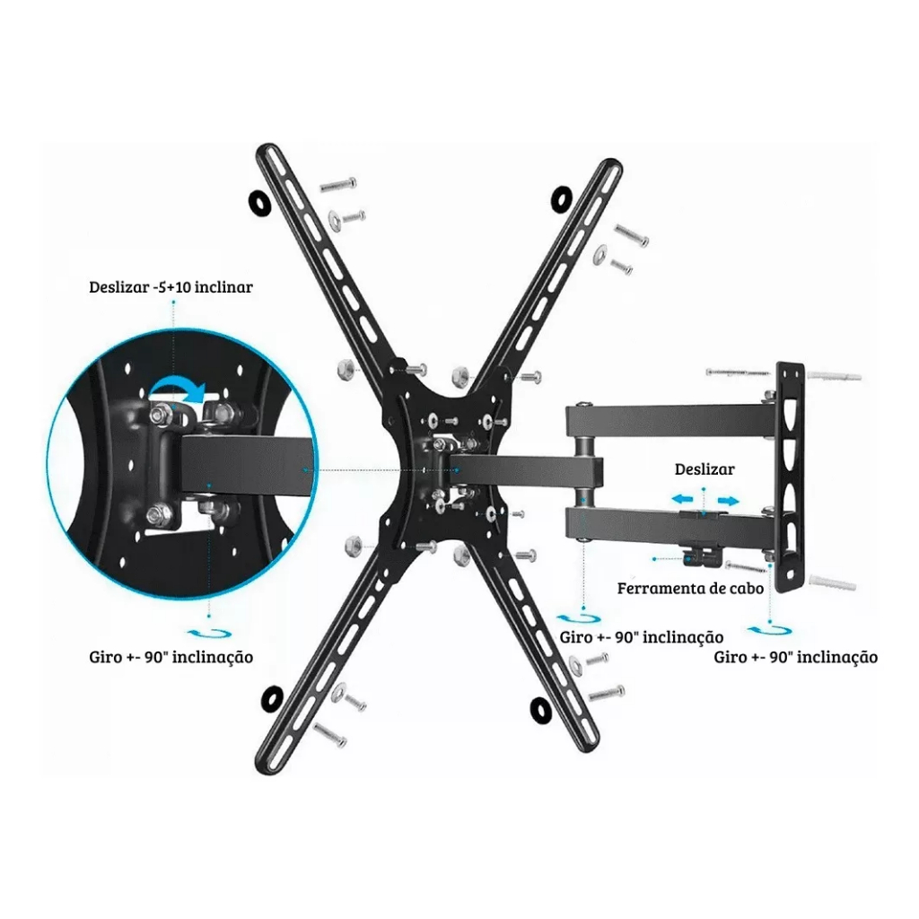 Suporte TV Tri Articulado de Parede - 16" 32" 40" 42" 43" 47" 50" 55"