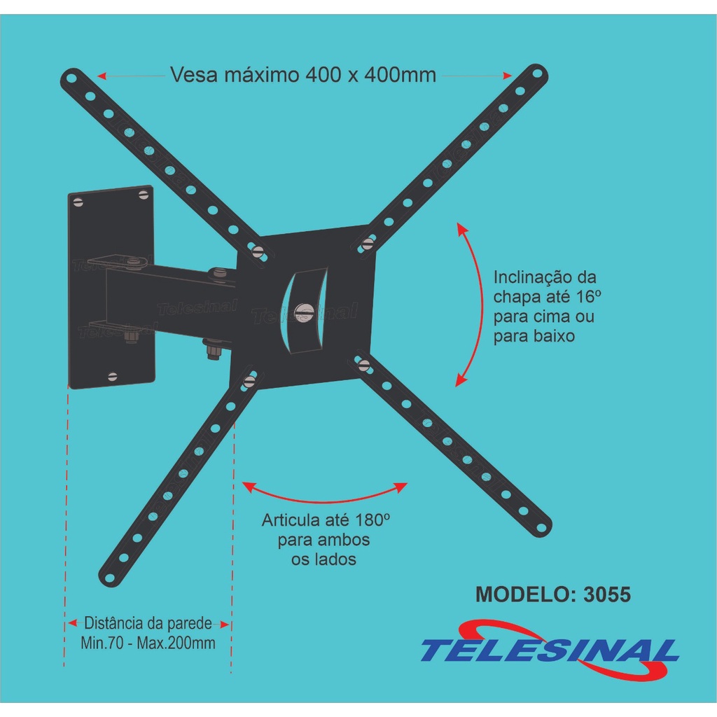 Suporte para Tv Articulado de Parede, Painél, para Tv's de 10 a 65 polegadas - Ref: BI-3055CX