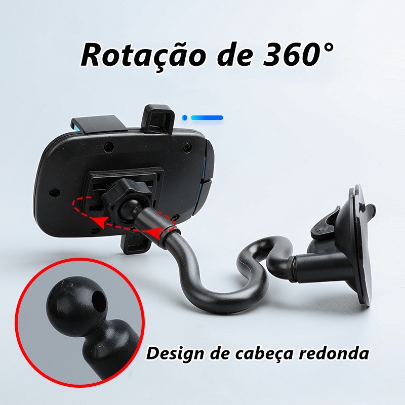 Suporte Veicular Carro Para Celular 360º Fixação Ventosa Haste Firme Ajustável