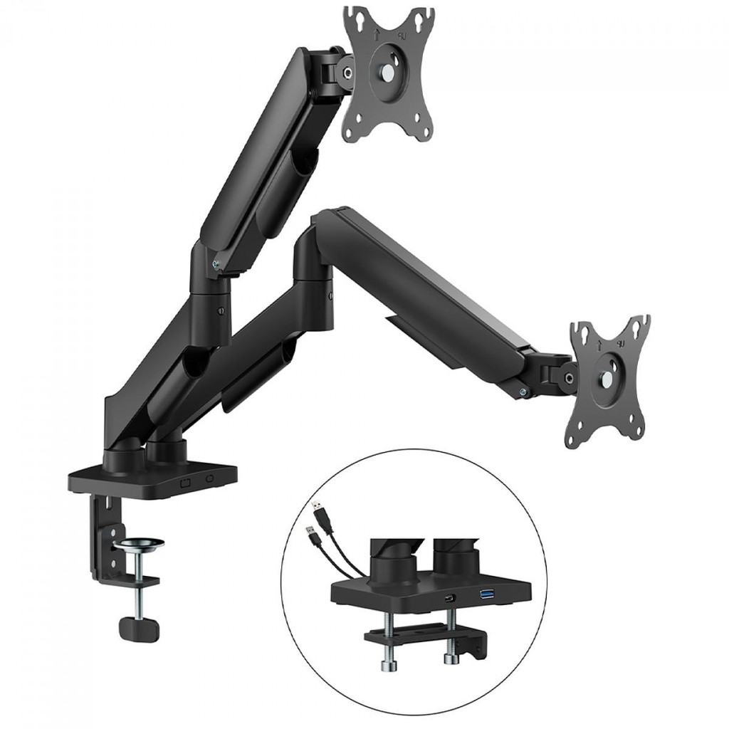 Suporte de Mesa Bluecase Ergo Flexy, Articulado, Com Conectores USB, 17" a 32", Preto, BSMTS02U-1BBX
