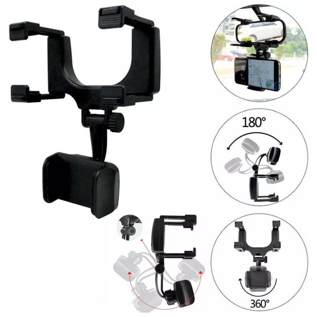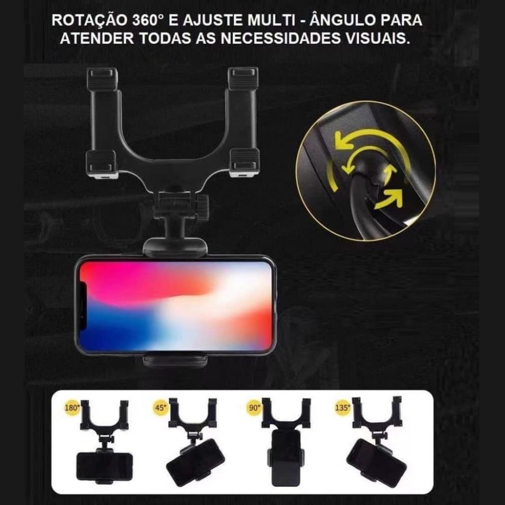 Suporte para Celular Smartphone com Apoio no Retrovisor Extensível Giro 360º