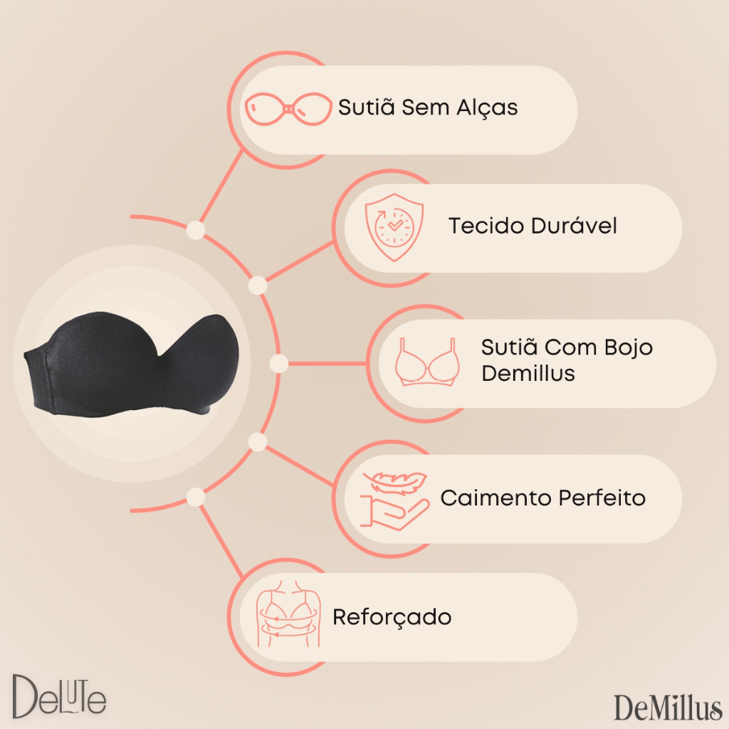 Sutiã Bustiê Vertigem Tomara Que Caia Demillus Com Bojo e Aro Barbatana Lateral Reforçado Feminino