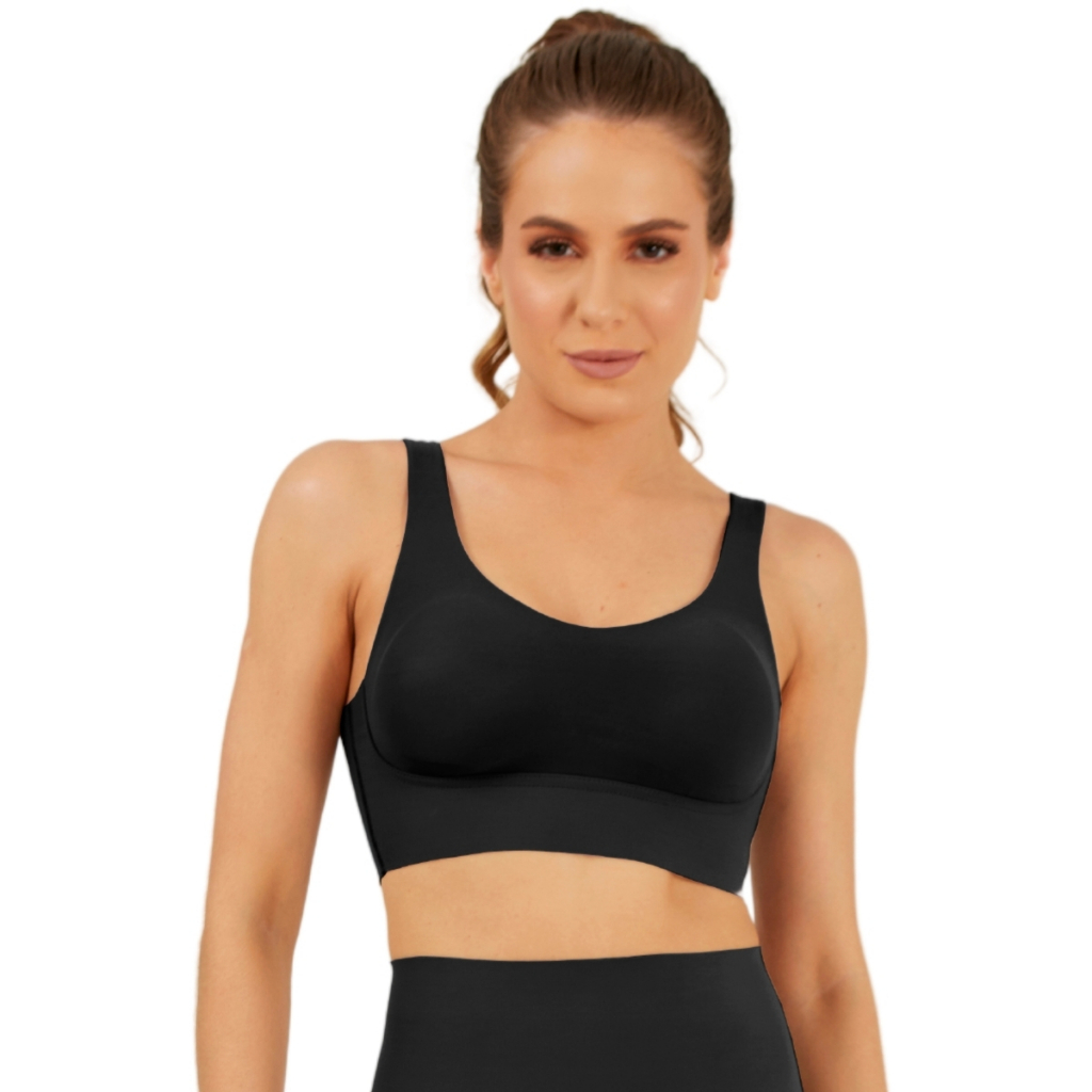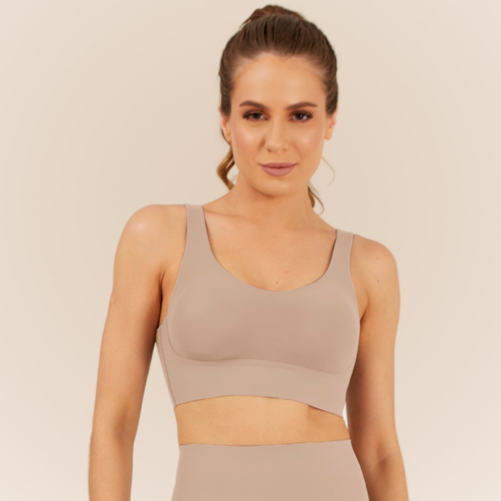 Sutiã Top Regata com Bojo Removível Corte a Laser Efeito Invisível Fit Alça Larga Nayane Rodrigues