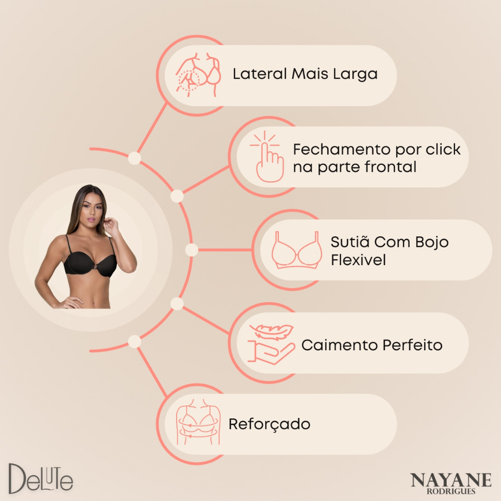 Sutia Sutien Com Bojo Tomara Que Caia Com Fecho Frontal e Alcas Ajustaveis e Removiveis em Silicone