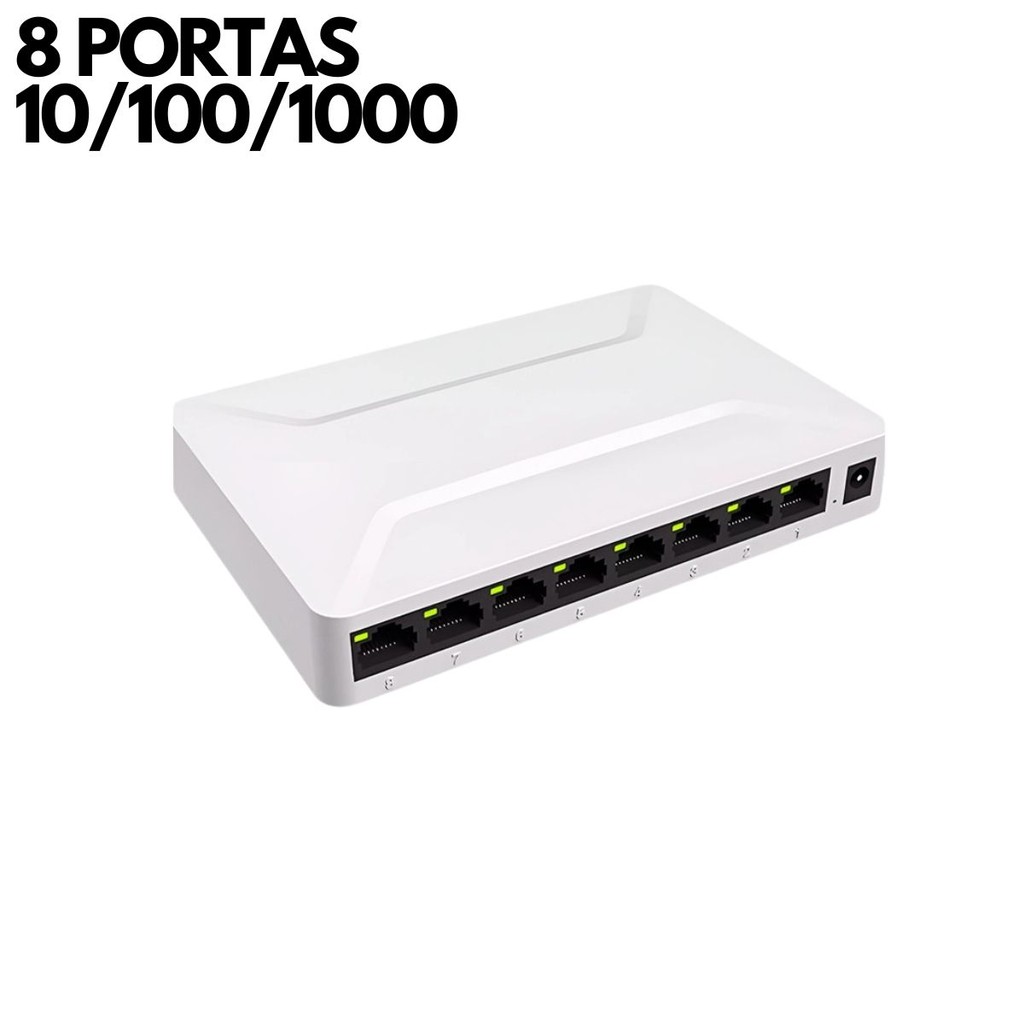 Switch de Rede 8 Portas 10/100/1000Mbps, Alta Velocidade e Desempenho Bivolt