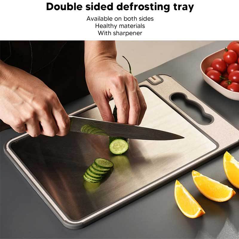 Tábua De Corte Dupla Face 304 De Aço Inoxidável, Antimofo e Antibacteriano, Ferramenta de Cozinha