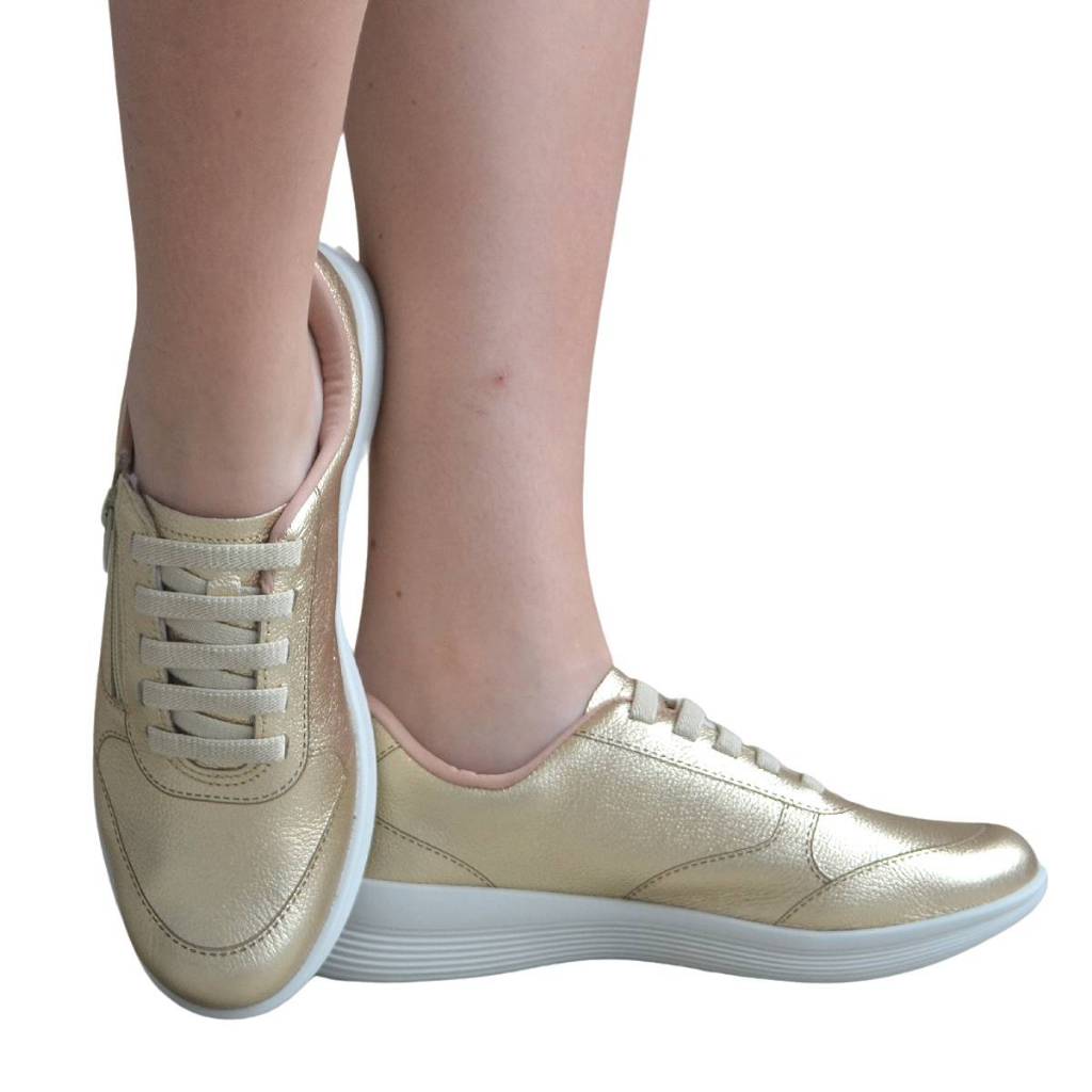 Tênis Feminino Usaflex uc06007 couro dourado zíper elástico