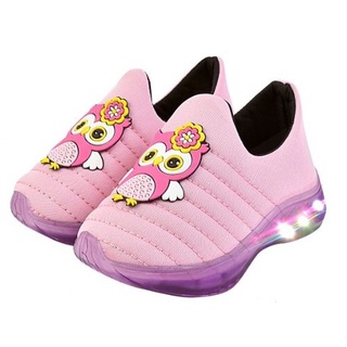Tênis Led Infantil Luzinha Menina Calce Fácil Confortável Anatômico PLOC LED73 - ROSA CORUJA