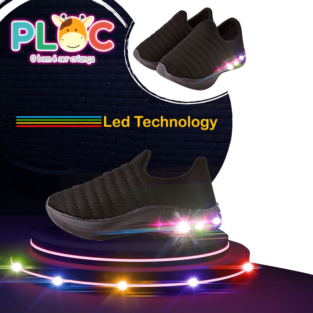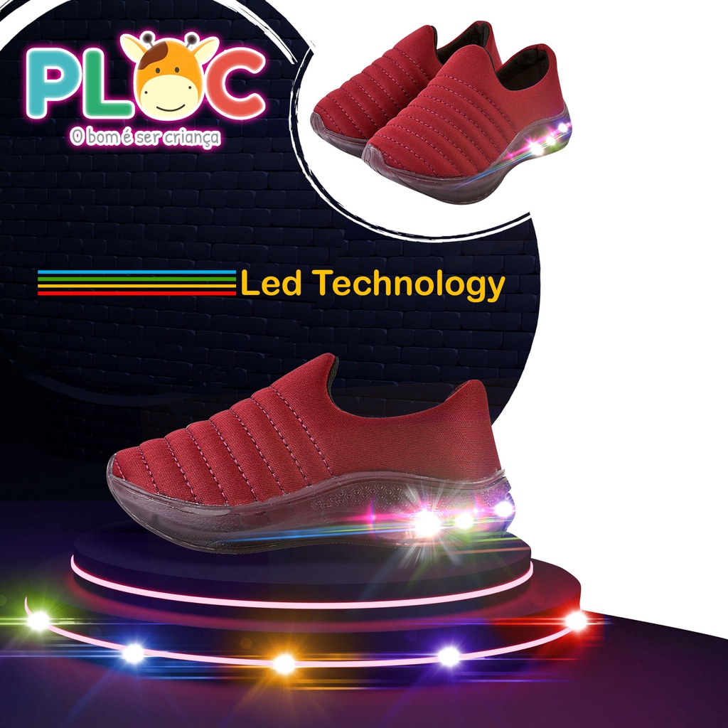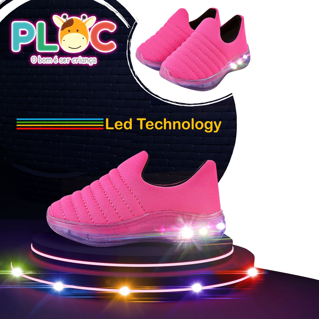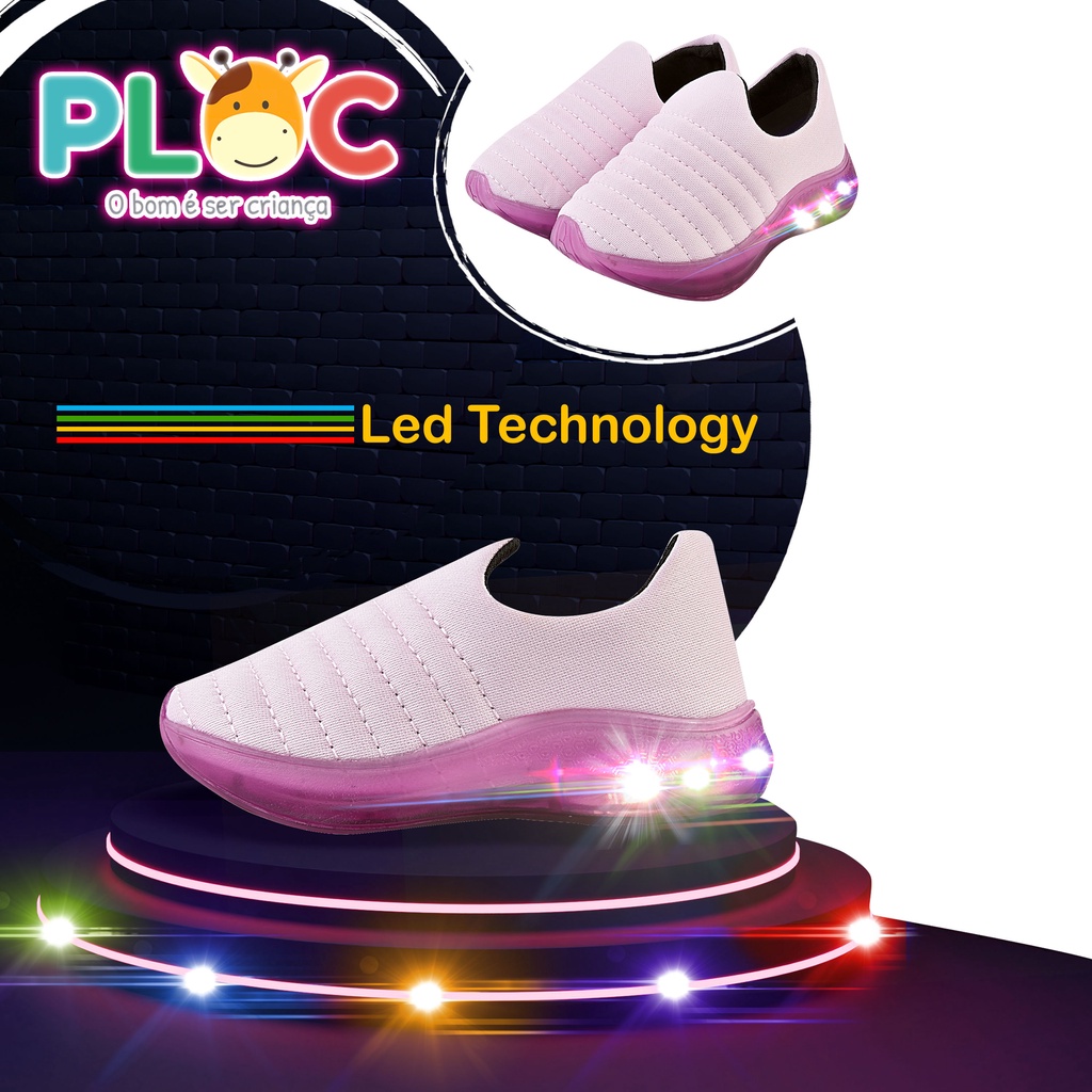 Tênis Led Infantil Luzinha Menina Meia Calce Fácil Leve Flexível Confortável Anatômico PLOC LED26