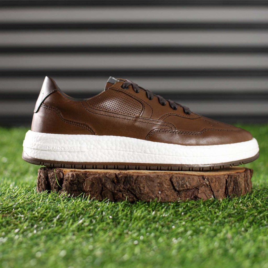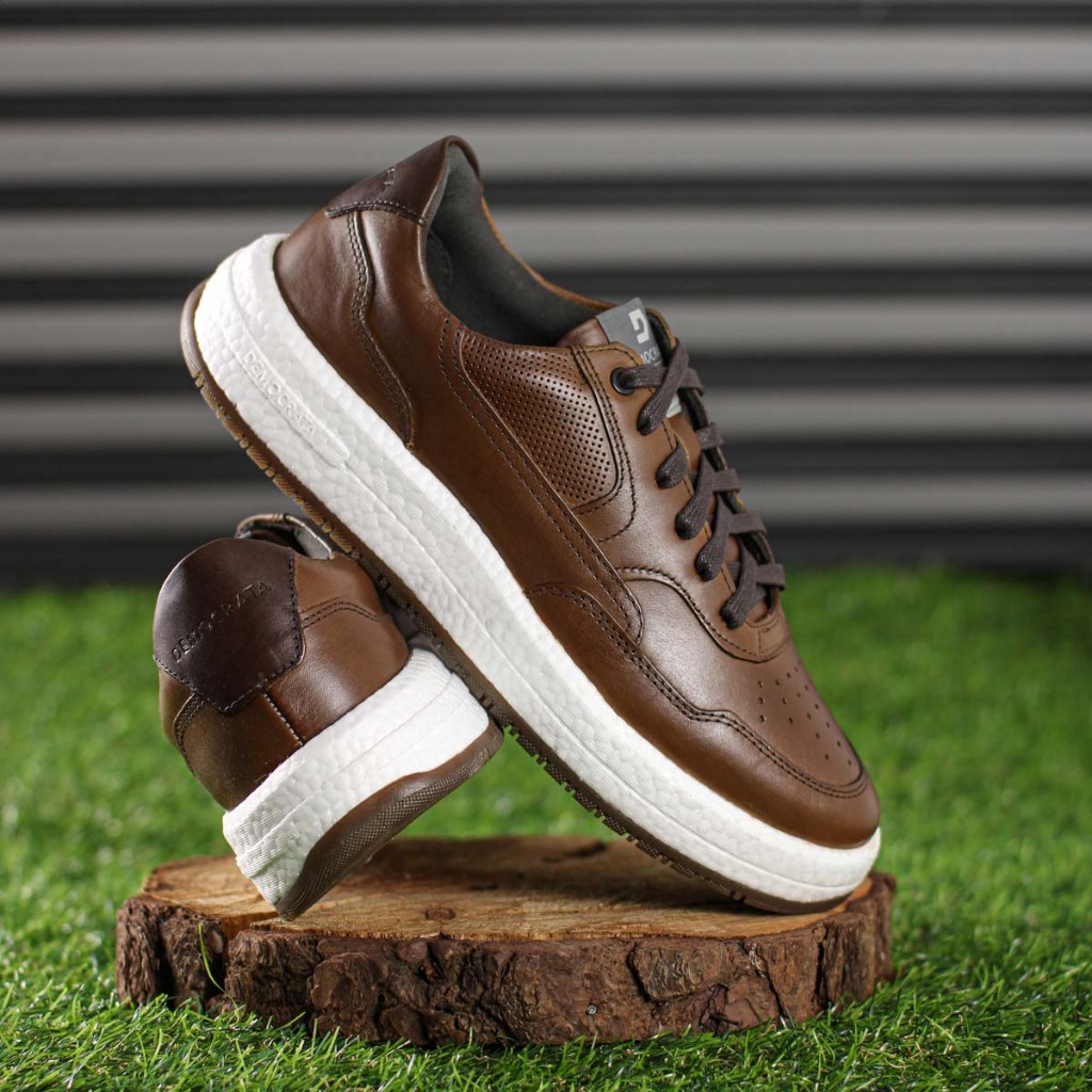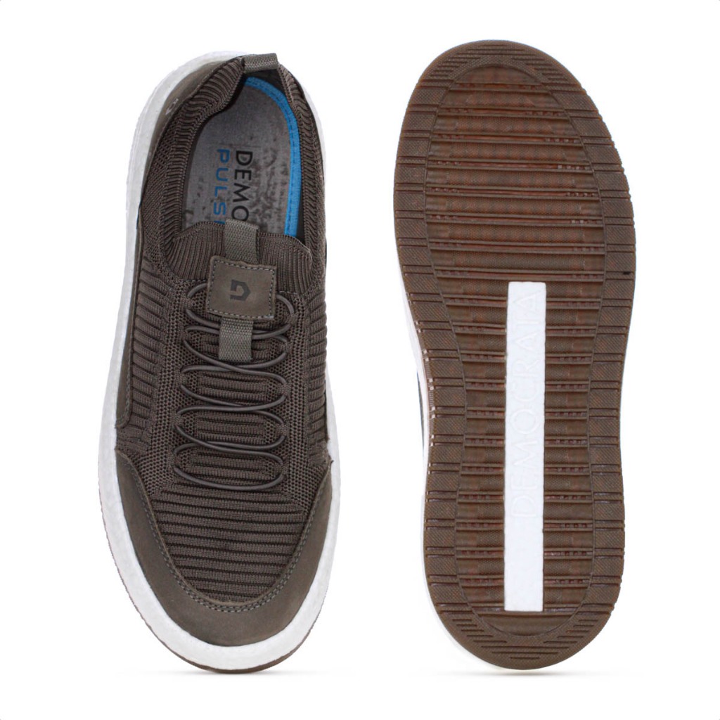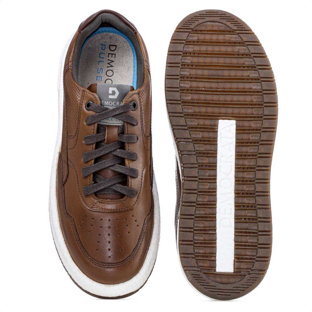 Tênis Masculino Democrata Denim Drake Pulse Marrom Casual Confortável