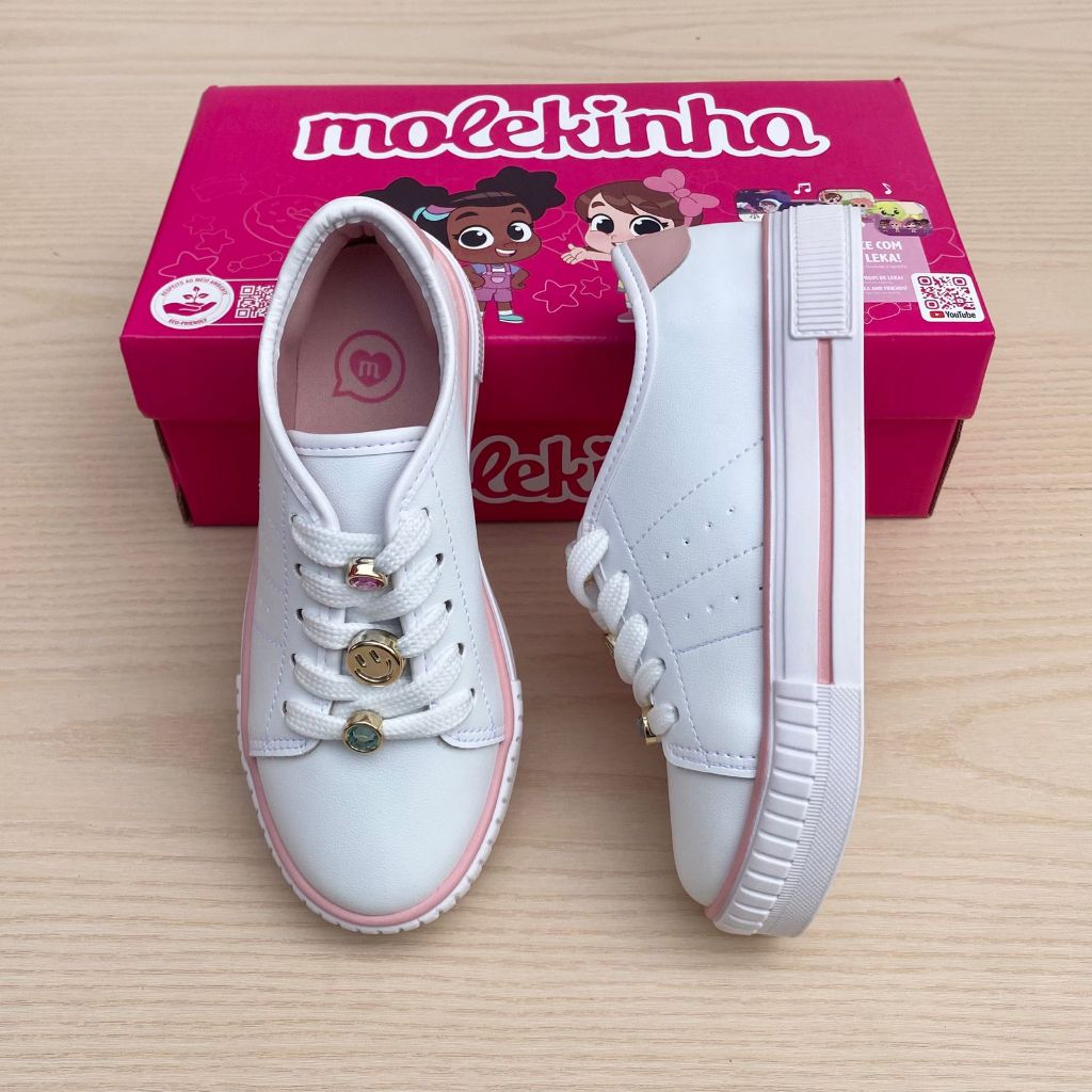 Tênis Sapato Infantil Menina Molekinha Pingente Confortável Escola Acolchoado Estilo