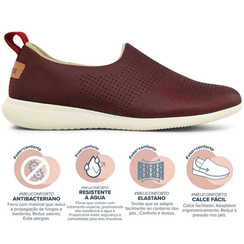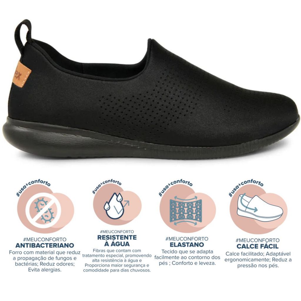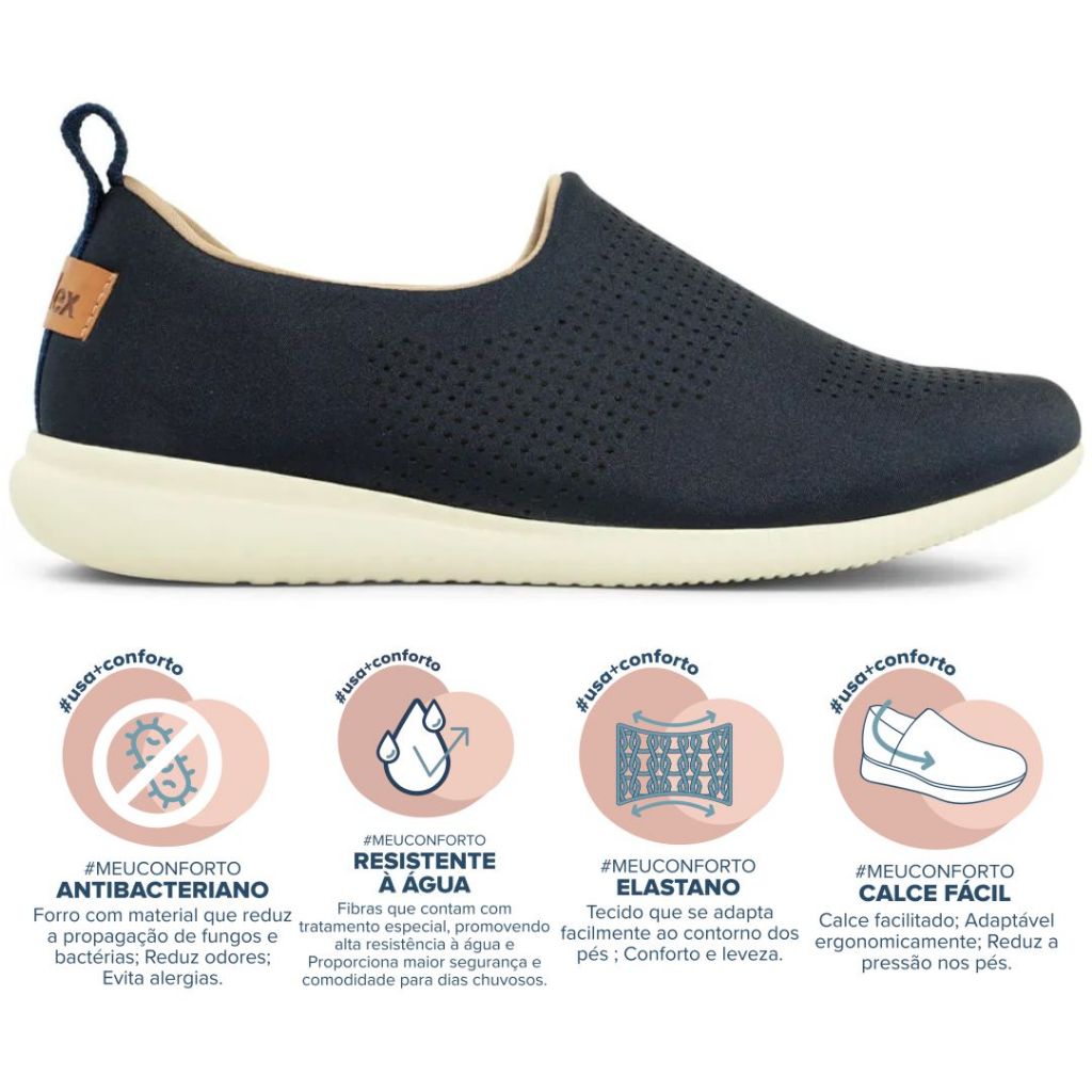 Tênis Slip On Feminino Usaflex Elastano Baixa Leve Flexível Resistente À Água