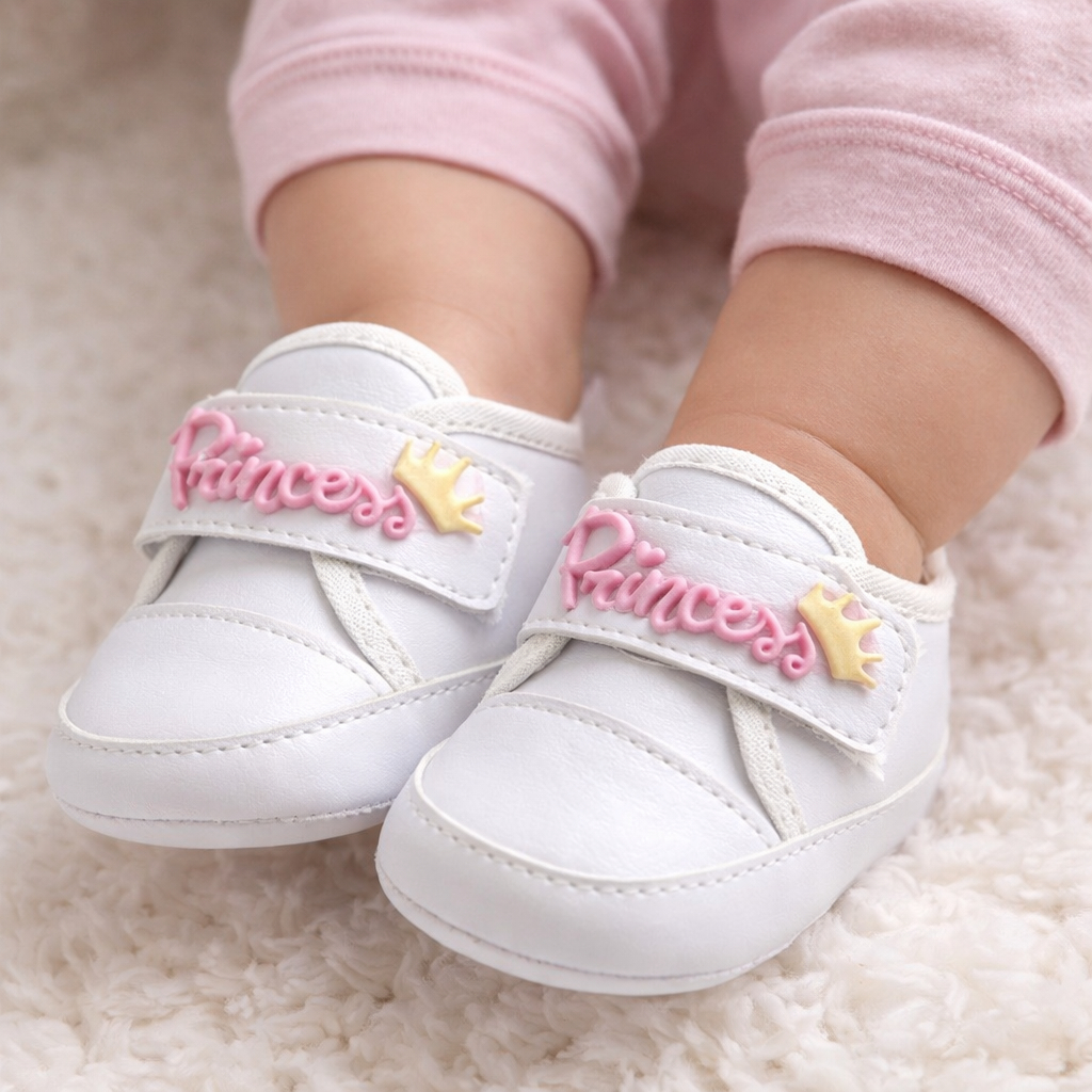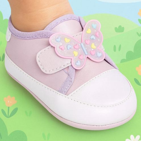 Tênis Ponta Velcro Menina Com Aplicação Emborrachado Linha Baby