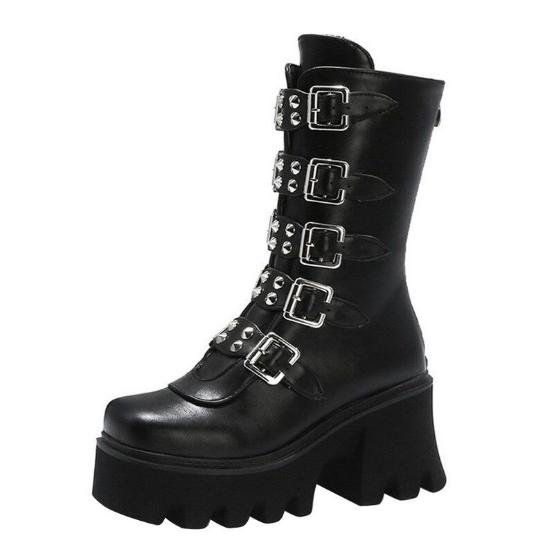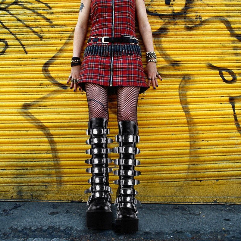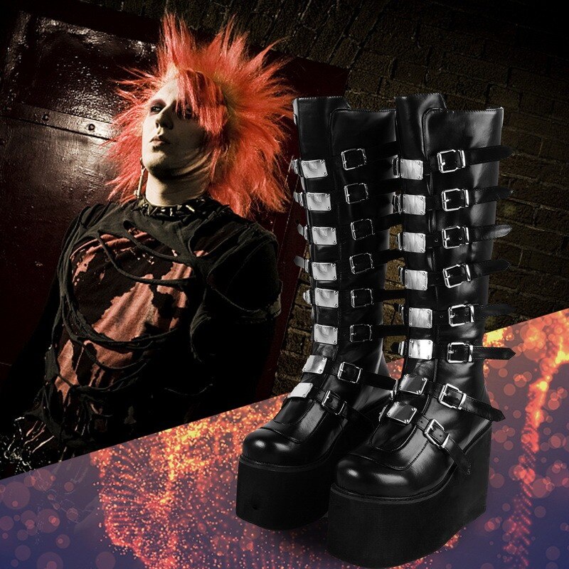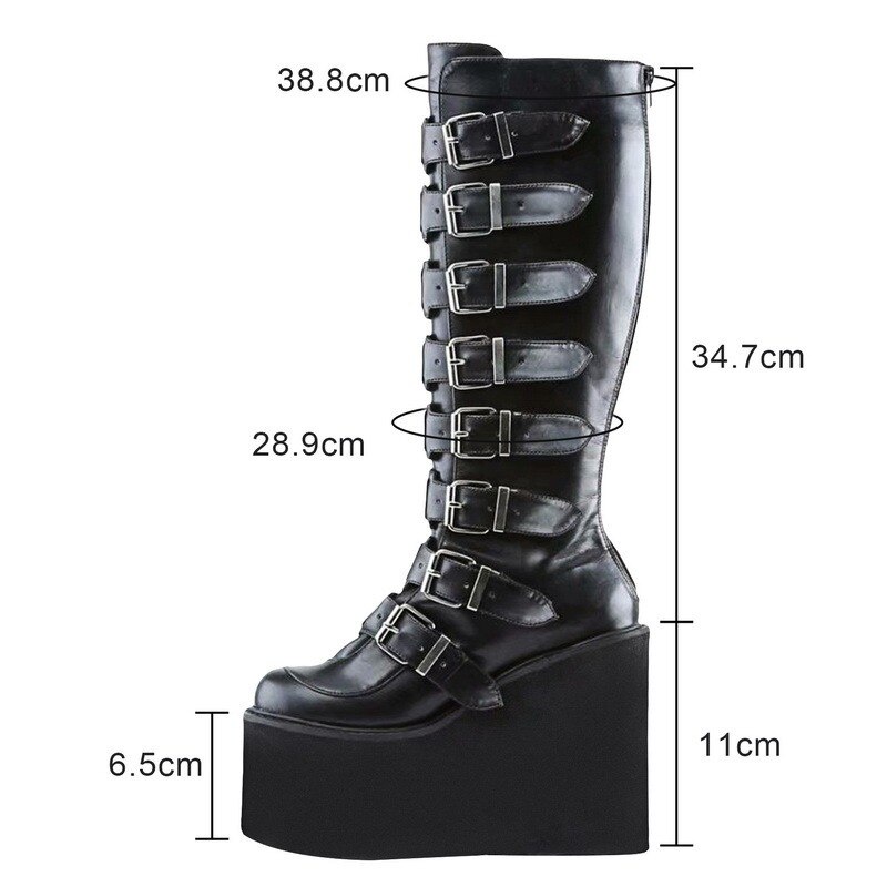 Tênis de salto alto e coxa feminino, sapato fantasia gótico preto na moda de 2021 para mulheres