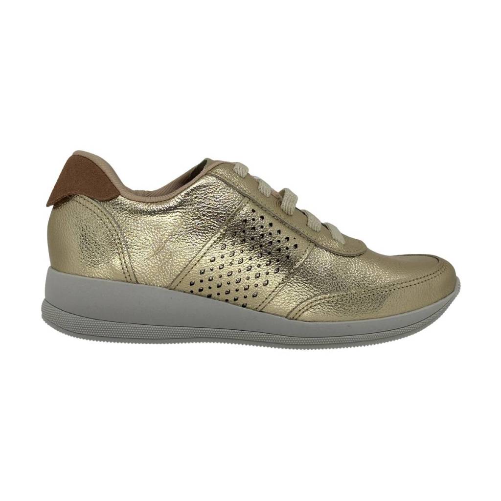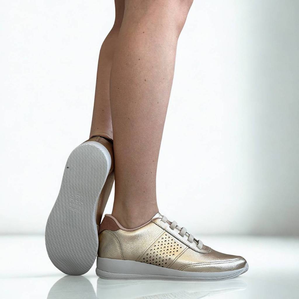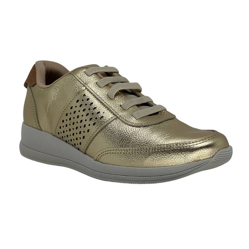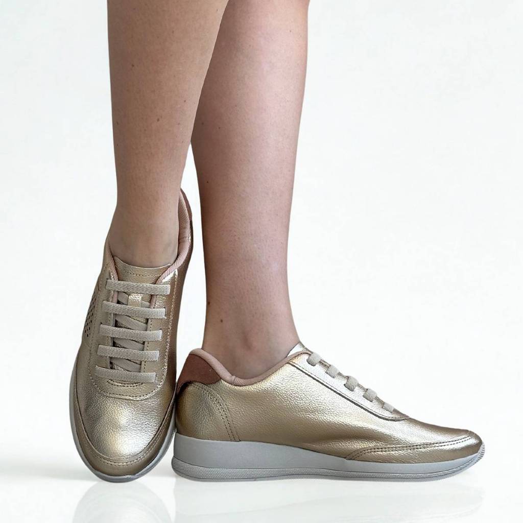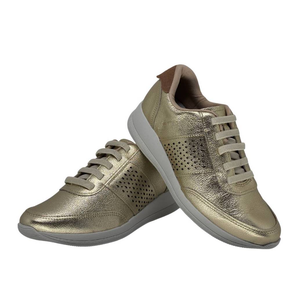 Tênis feminino Usaflex aj1201 couro confortável dourado