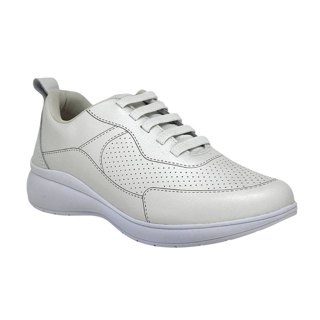 Tênis feminino Usaflex ud0100 couro branco leve confortável
