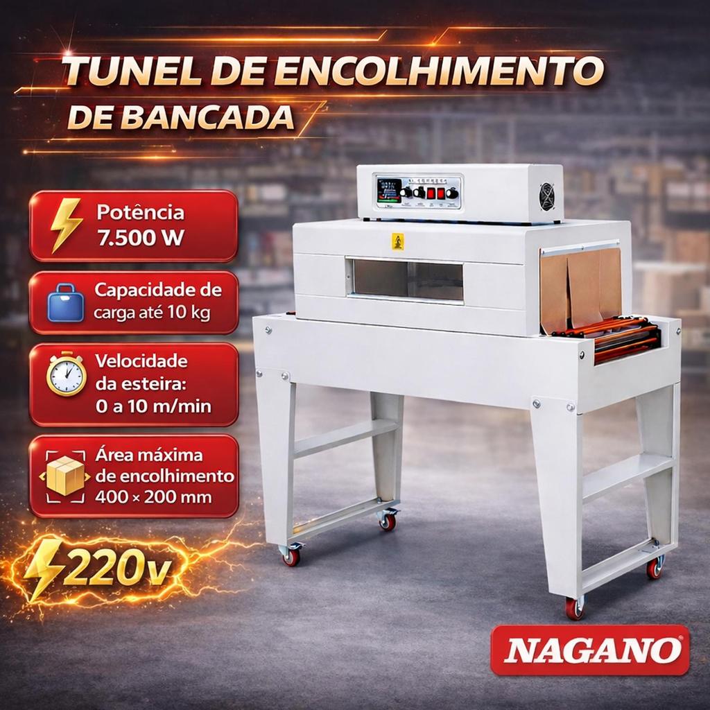 Túnel de Encolhimento de bancada 7.5kw Esteira 0 a 10 mmin 220v