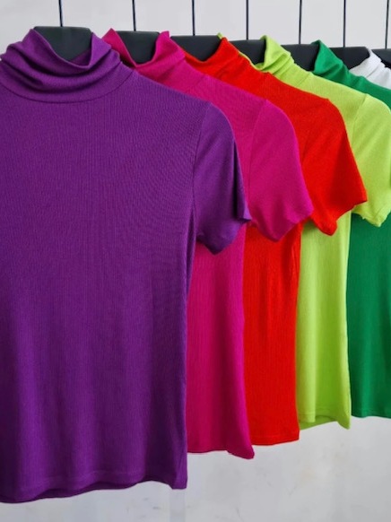 T-shirt Básica Camiseta Gola Alta Lisa Manga Curta Zara
