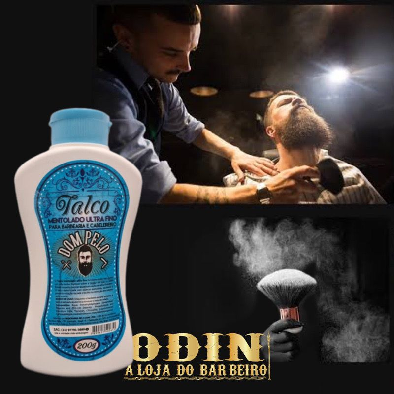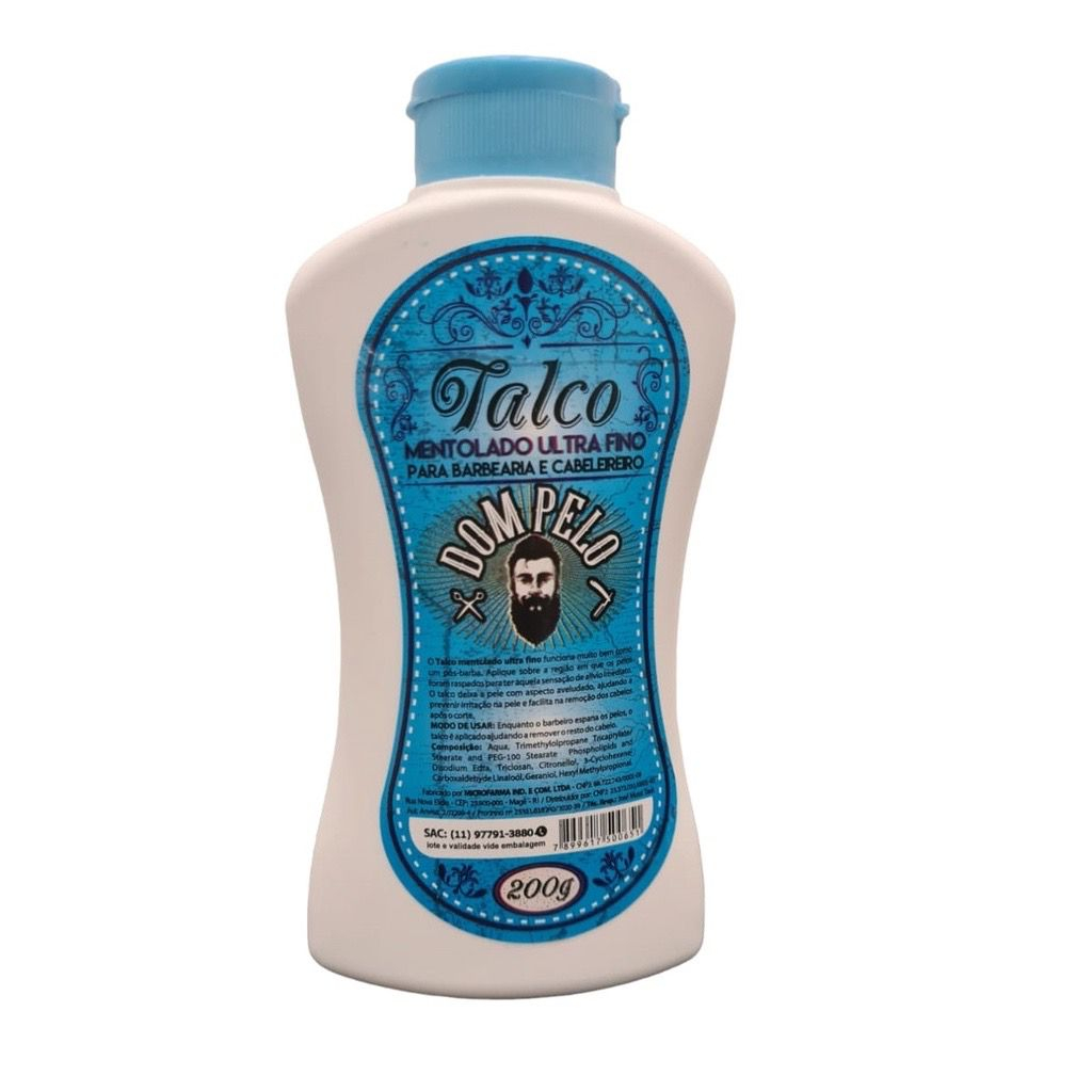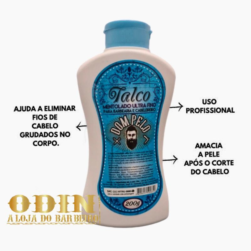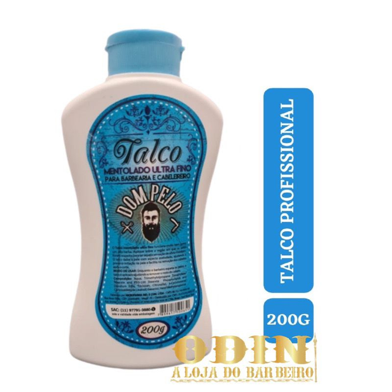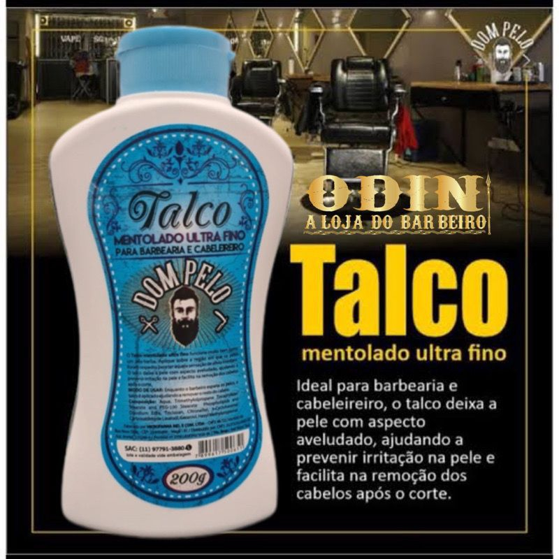 TALCO PARA TALQUEIRA MENTOLADO DOM PELO ULTRA FINO 200G TALCO PARA CABELEIREIRO TALCO MENTOLADO PARA BARBEARIA