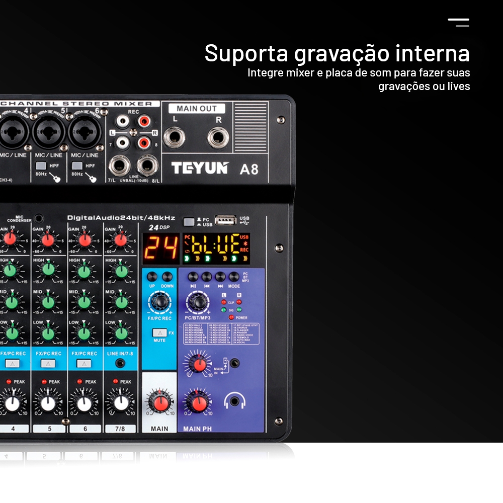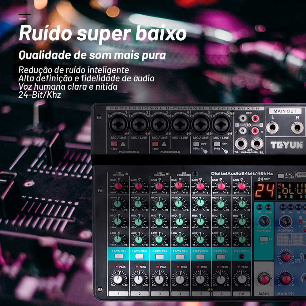 TEYUN 8 Canais Mesa De Som Profissional Mixers Som Mixagem Console Entrada do Computador 48V Número de Potência Para DJ