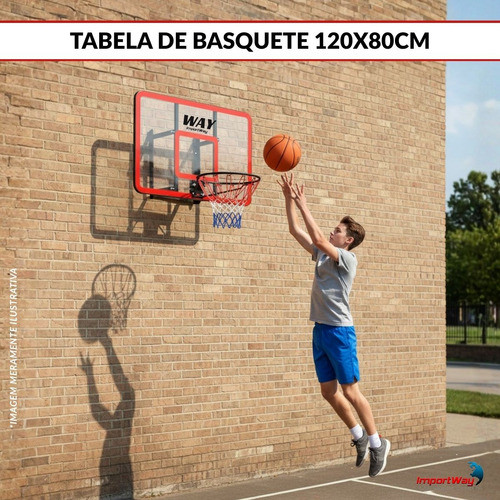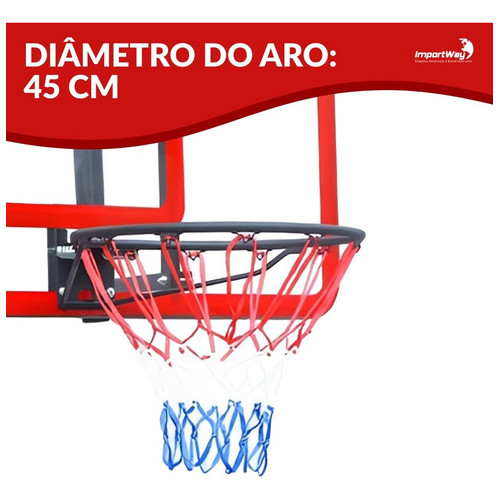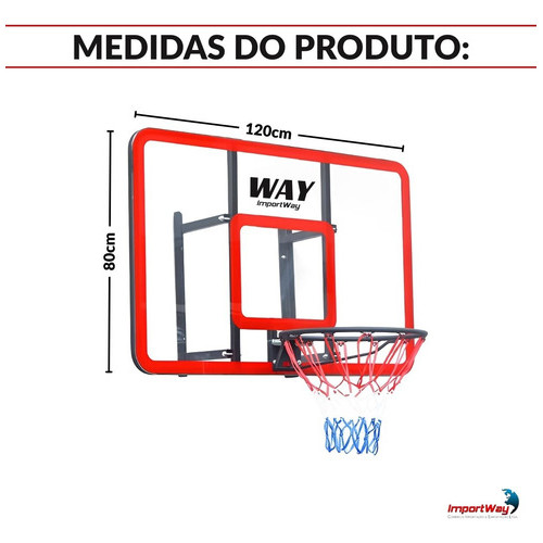 Tabela de Basquete 120x80cm Importway – Aro Completo com Rede Reforçada Rede Durável