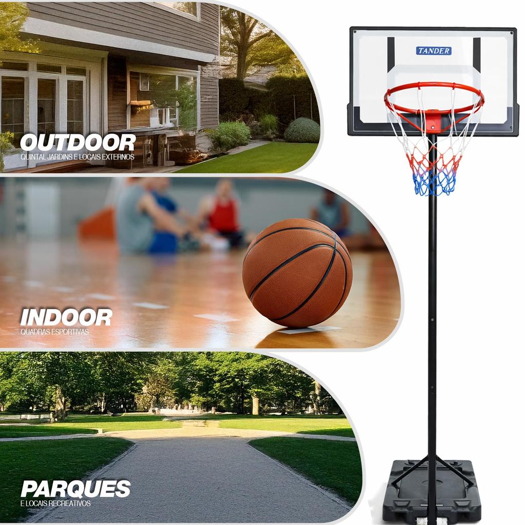 Tabela de Basquete Portátil Móvel Altura Ajustável 2,10M Aro 45cm
