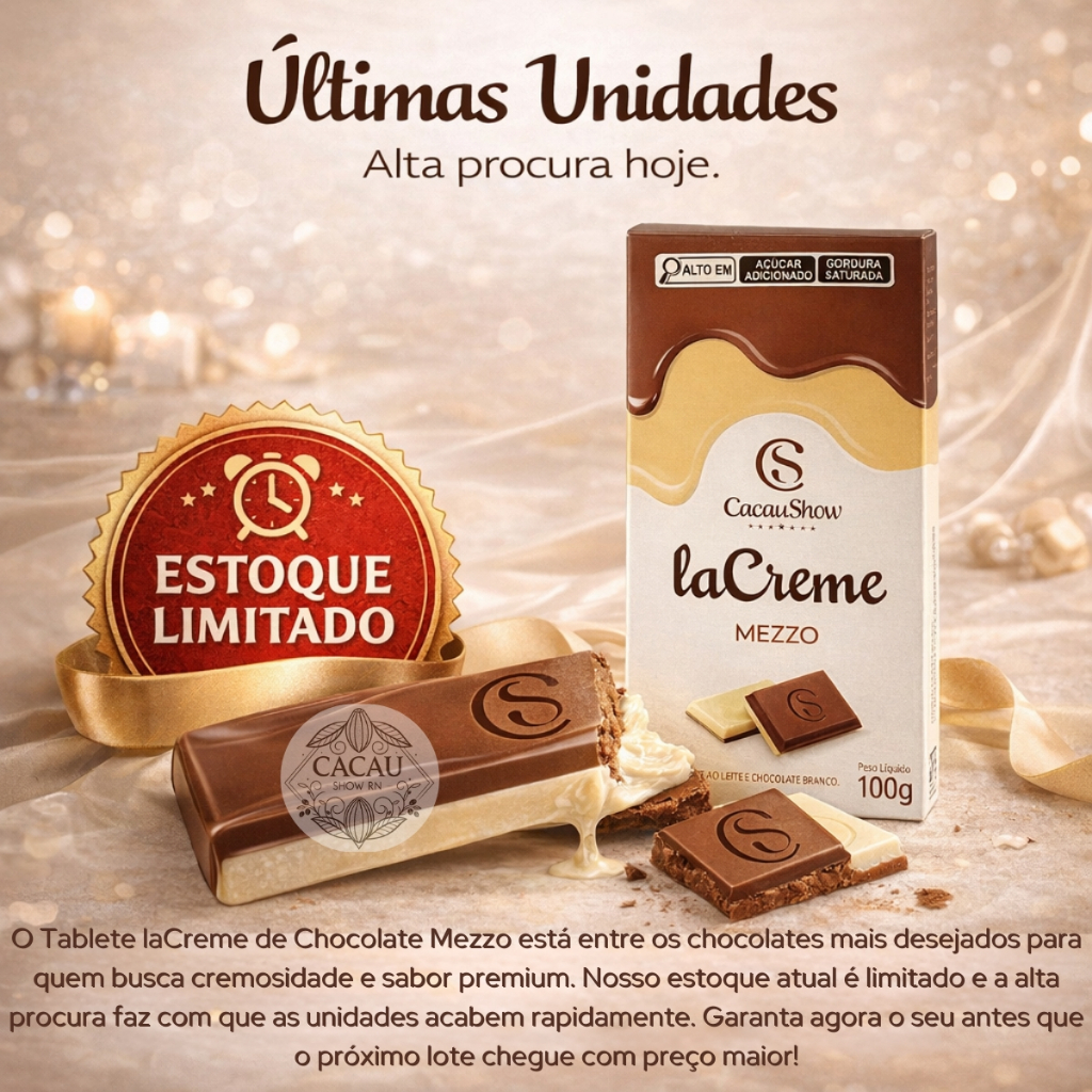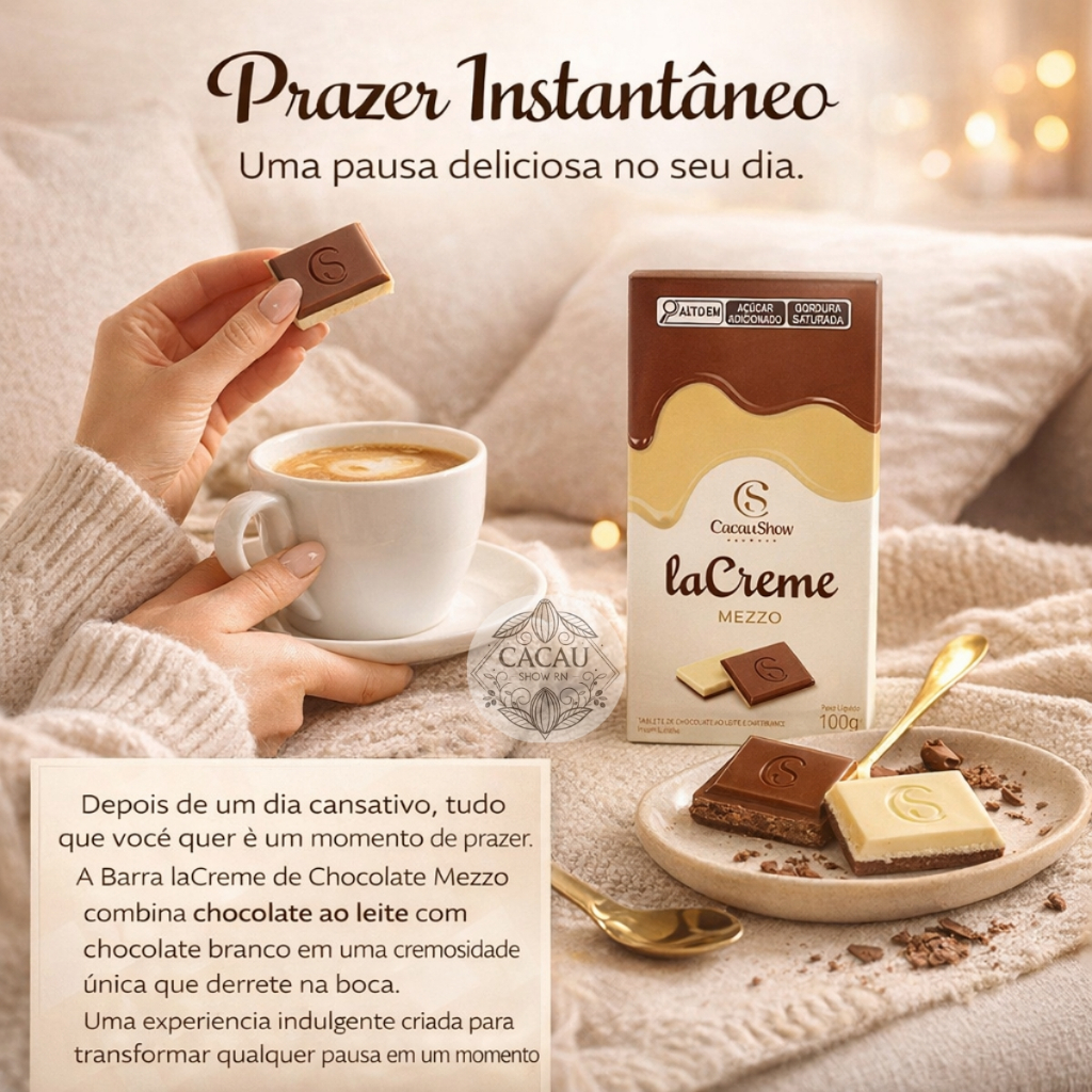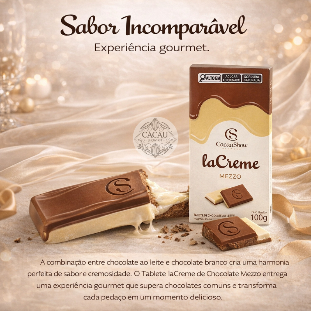 Barra De Chocolate Tablete Lacreme Mezzo 100g Cacau Show
