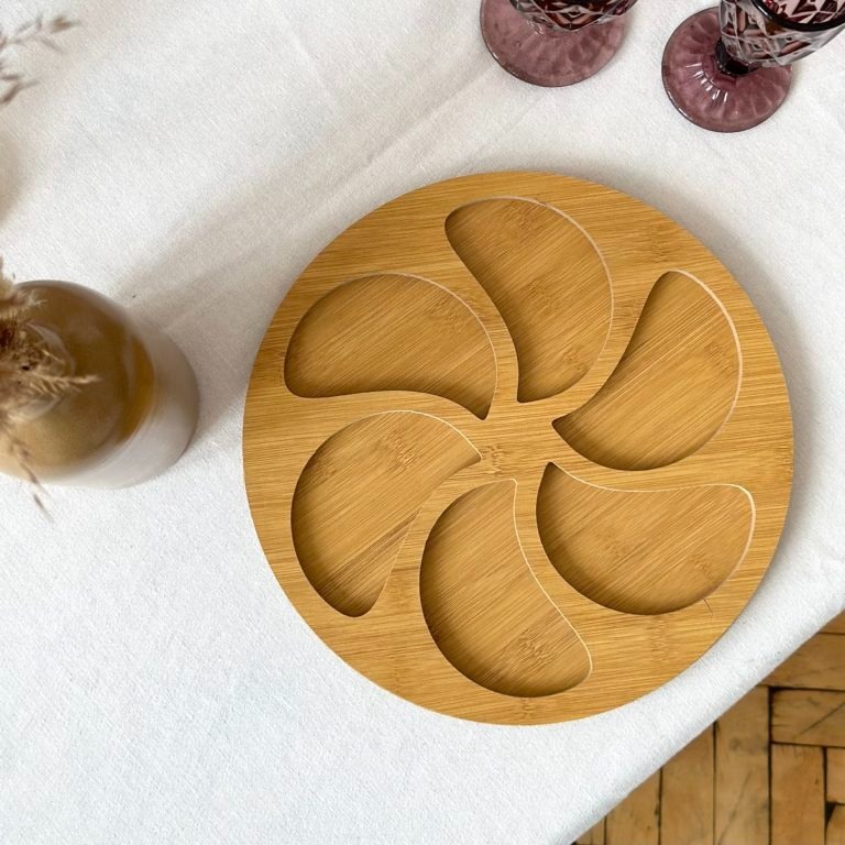 Tabua De Petiscos Com 6 Divisorias 29X29CM De Mdf Tabua De Frios Redonda Para Aperitivos