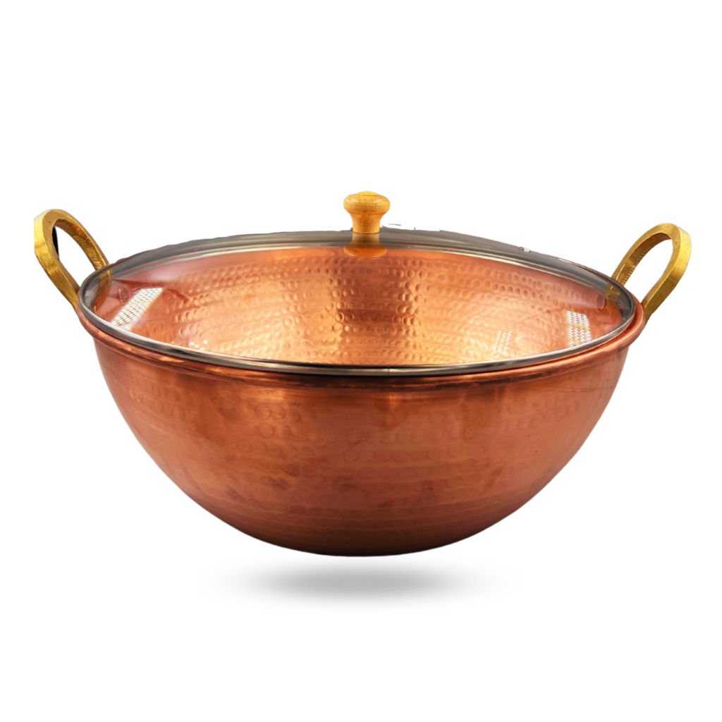 Tacho de Cobre Puro 10 Litros - Com Tampa de Vidro