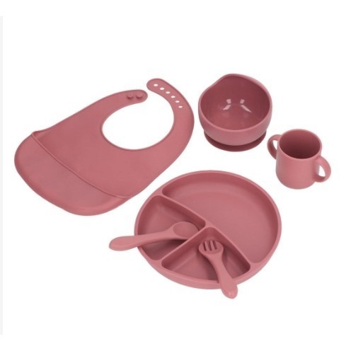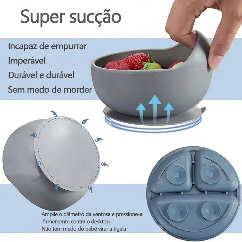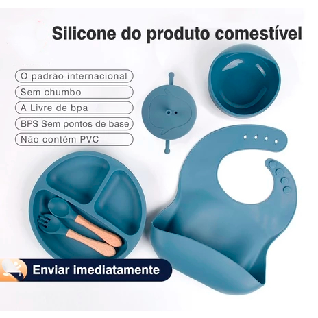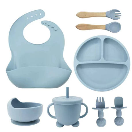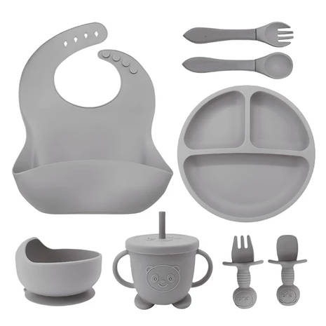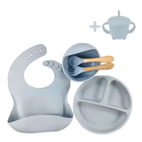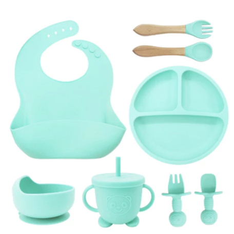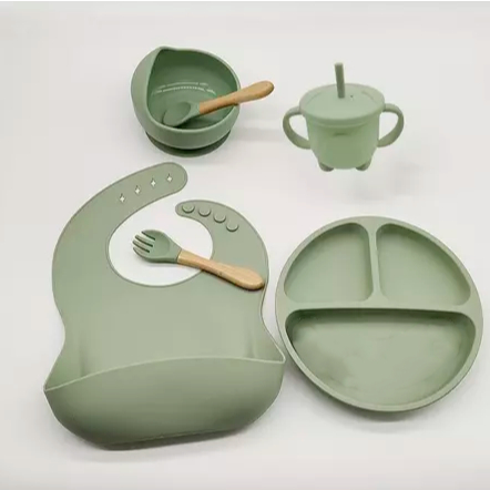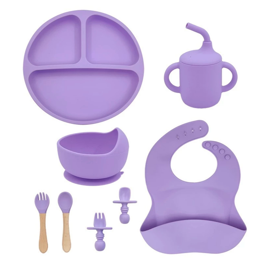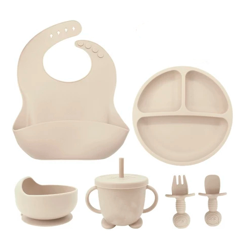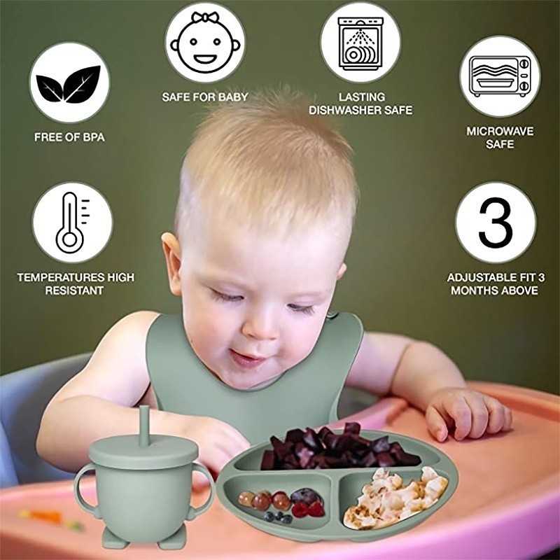 Talheres bebê silicone 6/8 Peças kit Talheres Infantil Com Ventosa Canudo Colher Babador Garfo