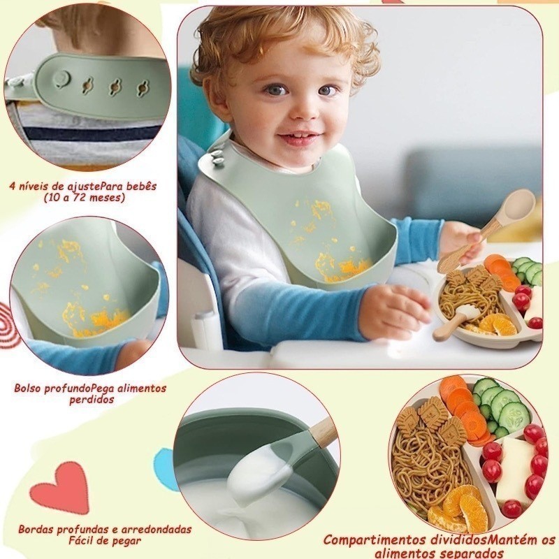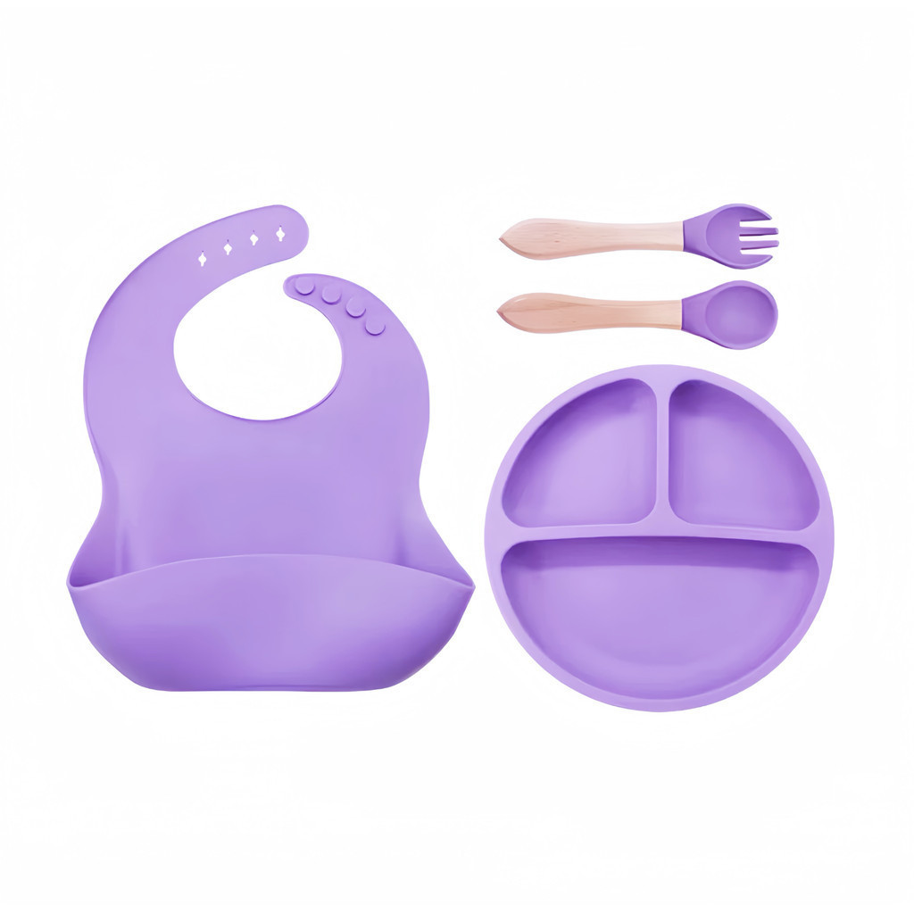 Talheres do Bebê 4 Pcs Talheres Silicone Infantil Com ventosa Colher Babador