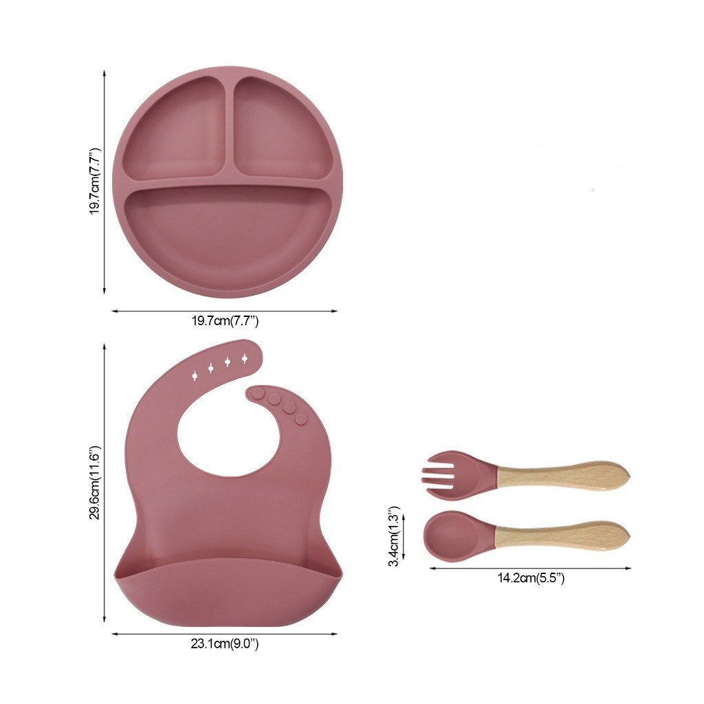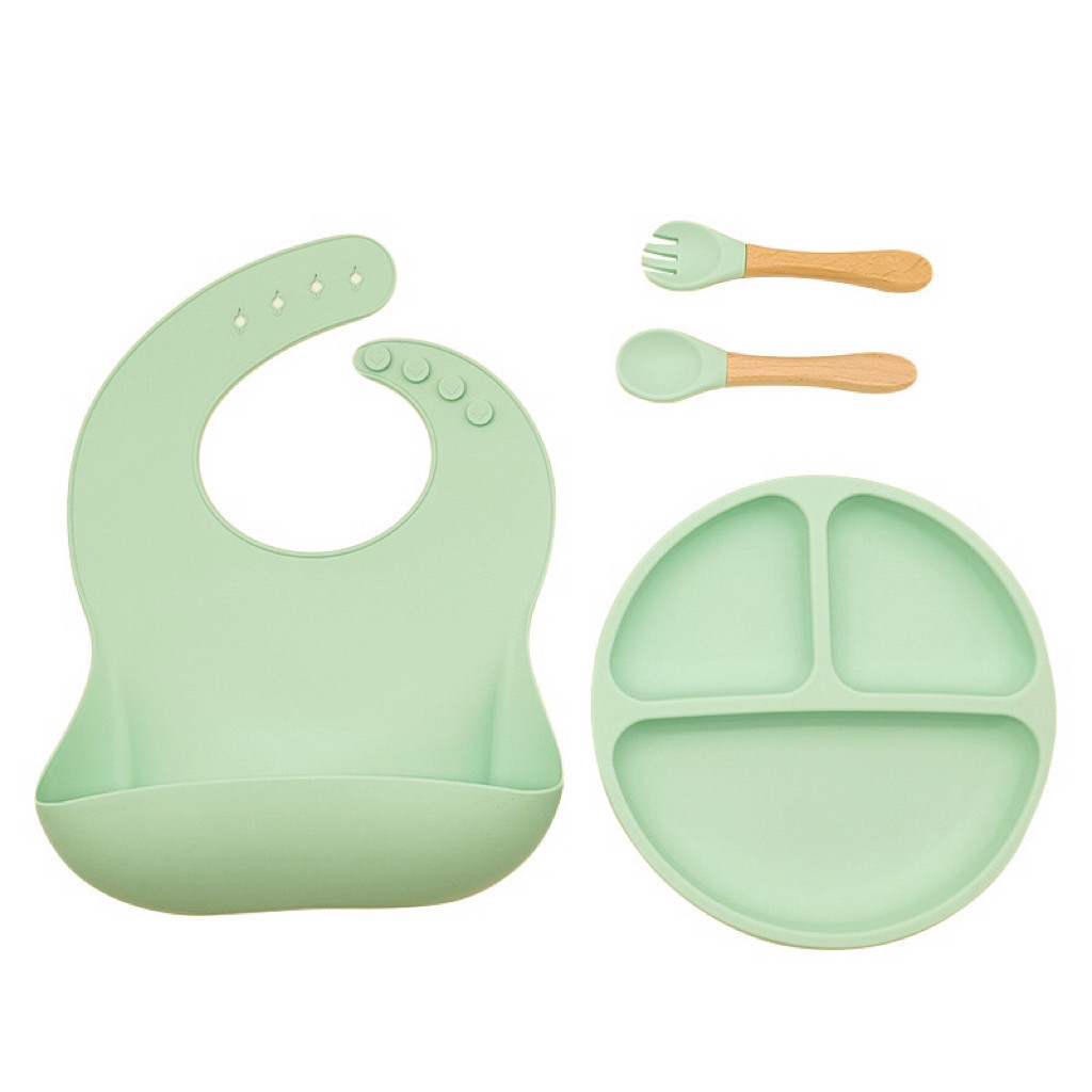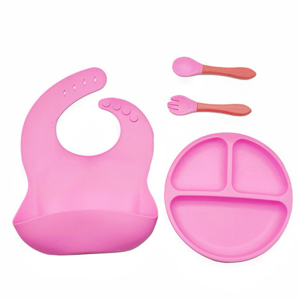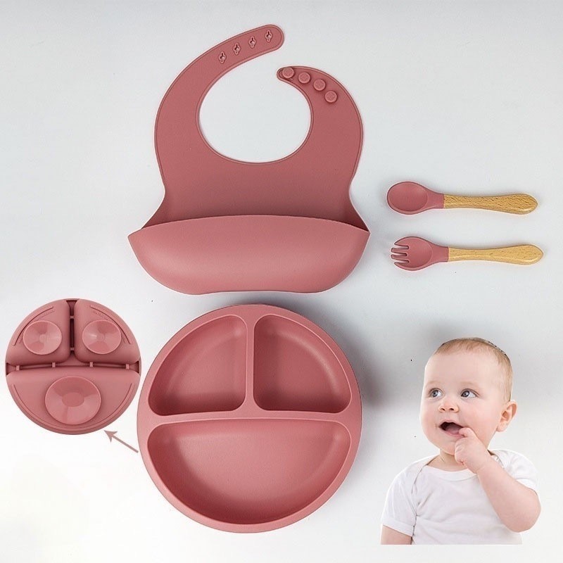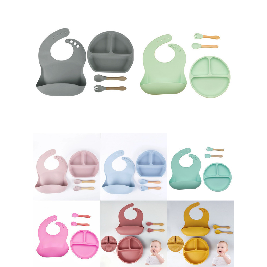 Talheres do Bebê 4 Pcs Talheres Silicone Infantil Com ventosa Colher Babador